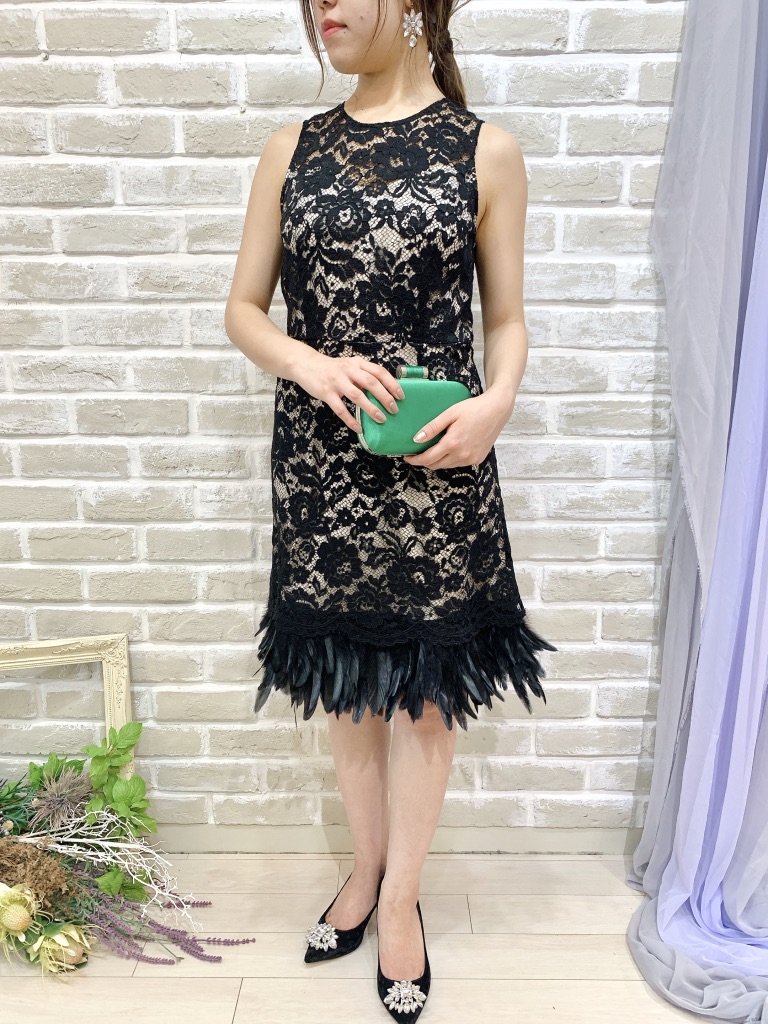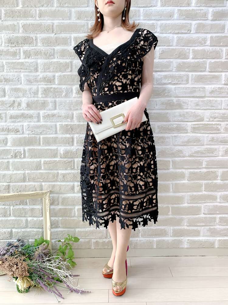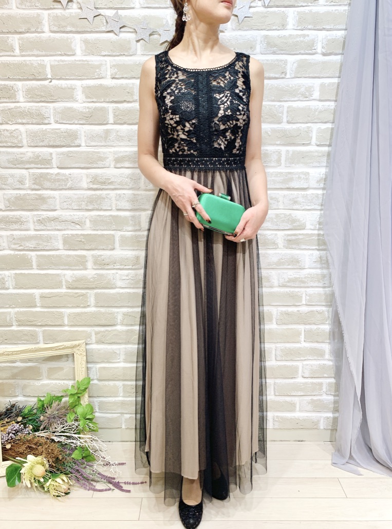 ブラック×アイボリー ティアードフリルSKバイカラードレス