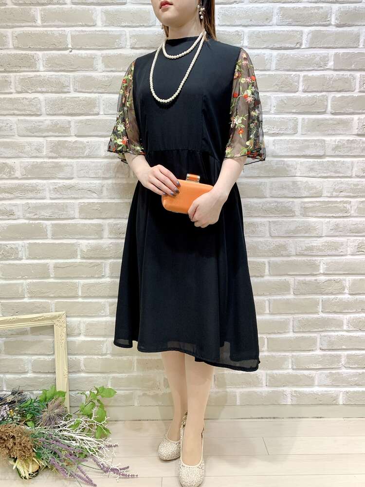 ★ブラックエンブロイダリーチュールミニフレアベアドレス