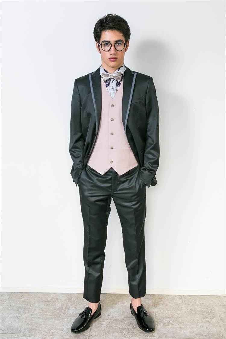 Lily Brown ブラックサテンフロントレース バック空きドレス S-M