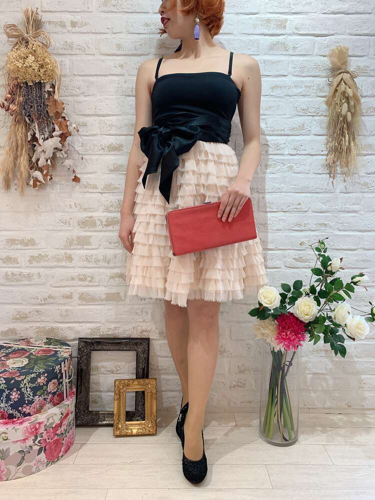 リボン付ブラックトップ×ホワイトティアードスカー...