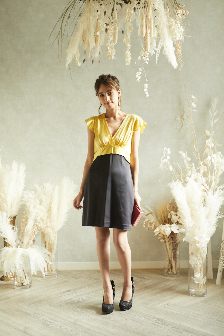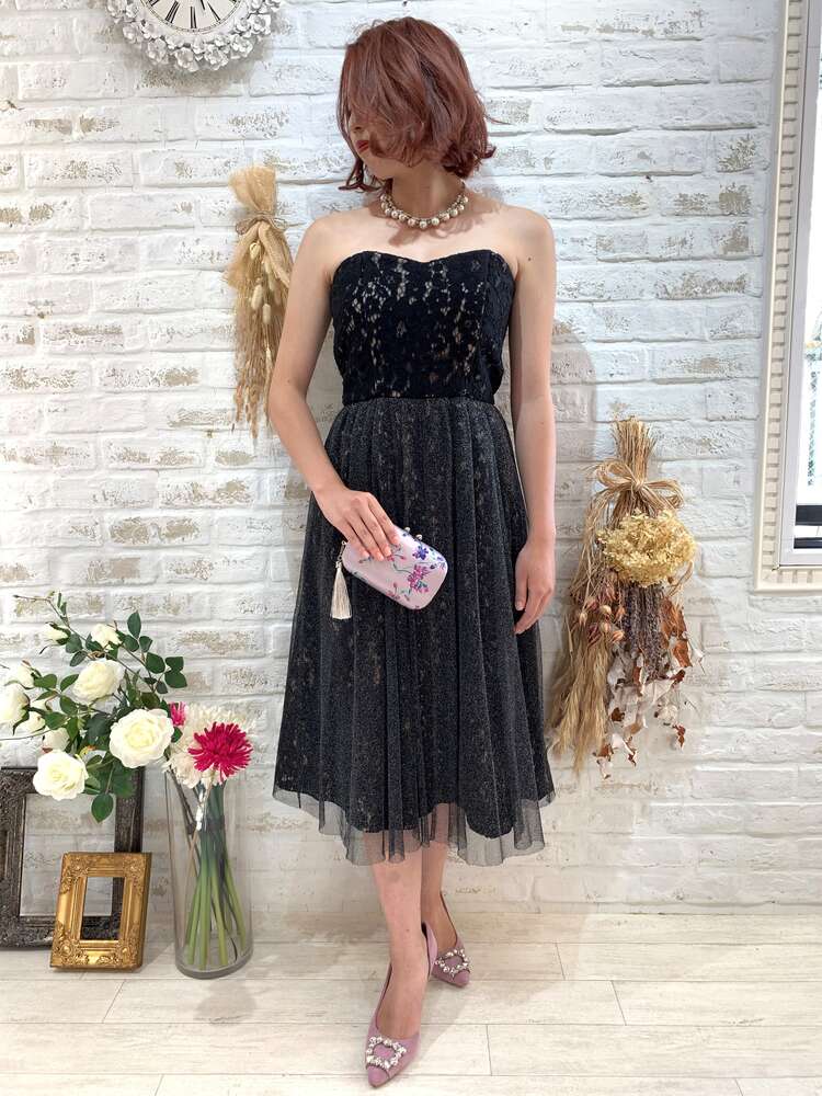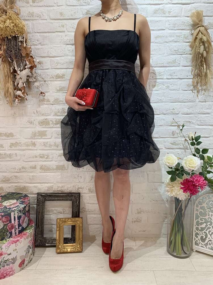 リボン付ブラックトップ×ホワイトティアードスカートキャミドレス