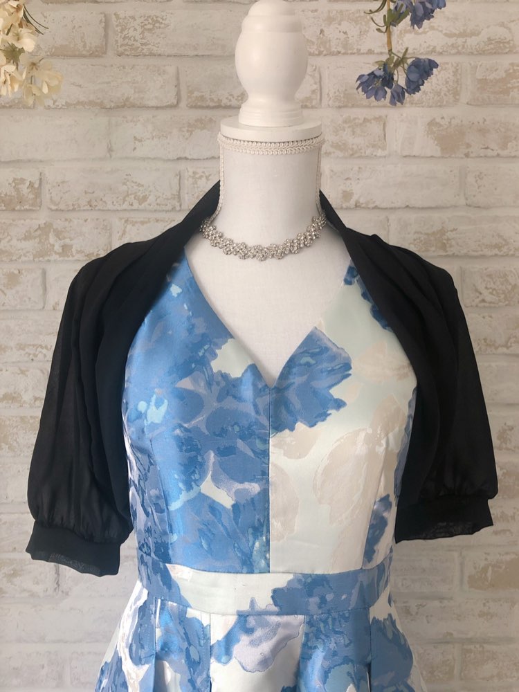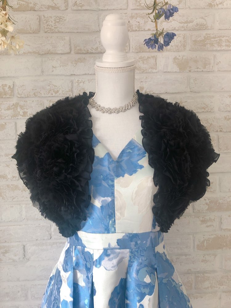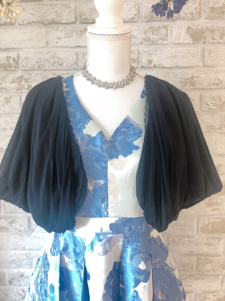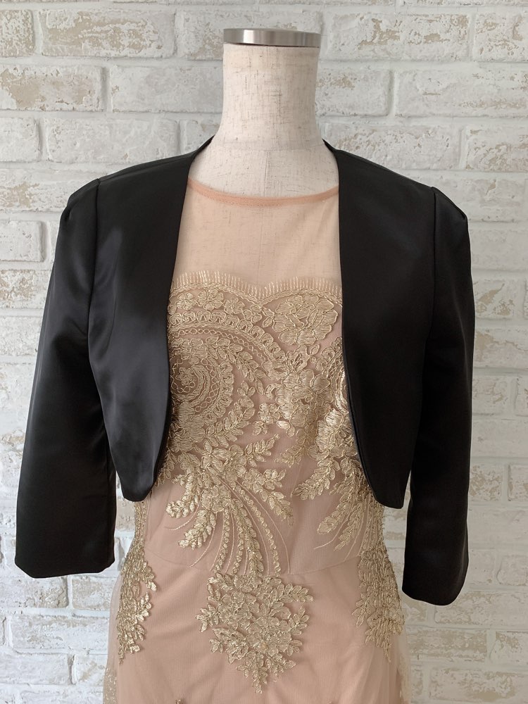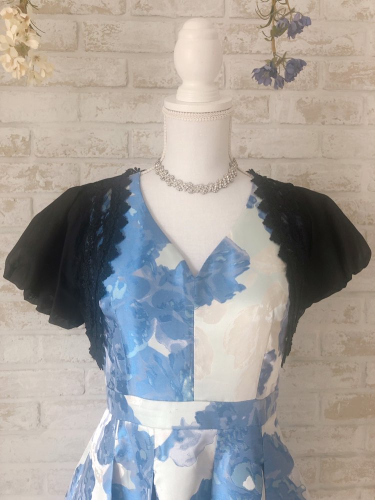 丈間短めレースデザイン付き薄手ブラックボレロ