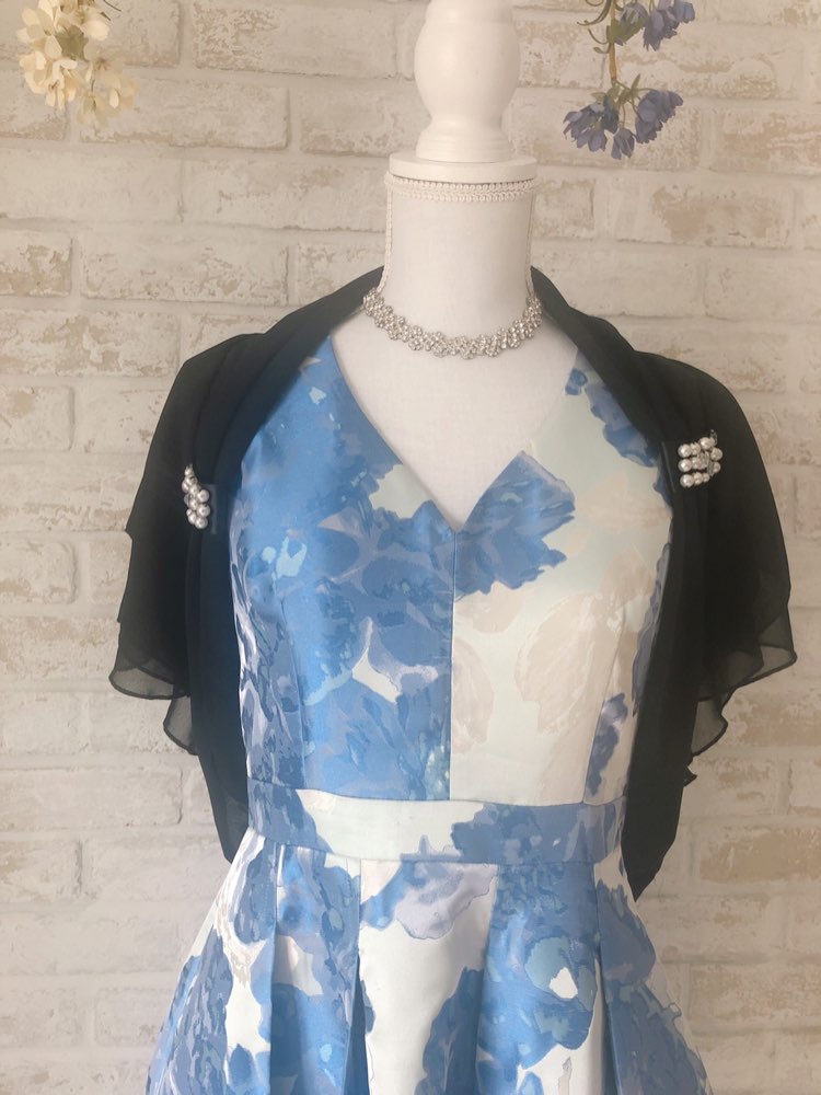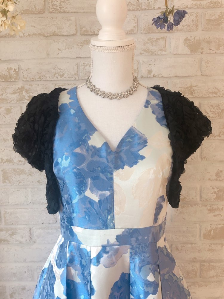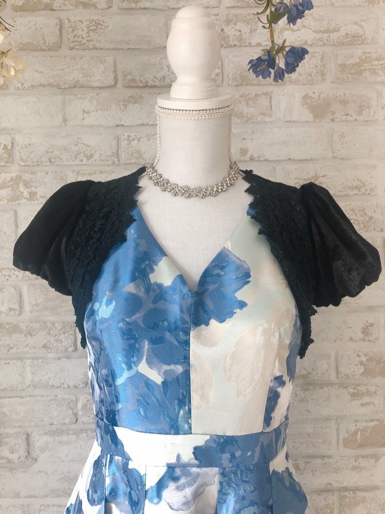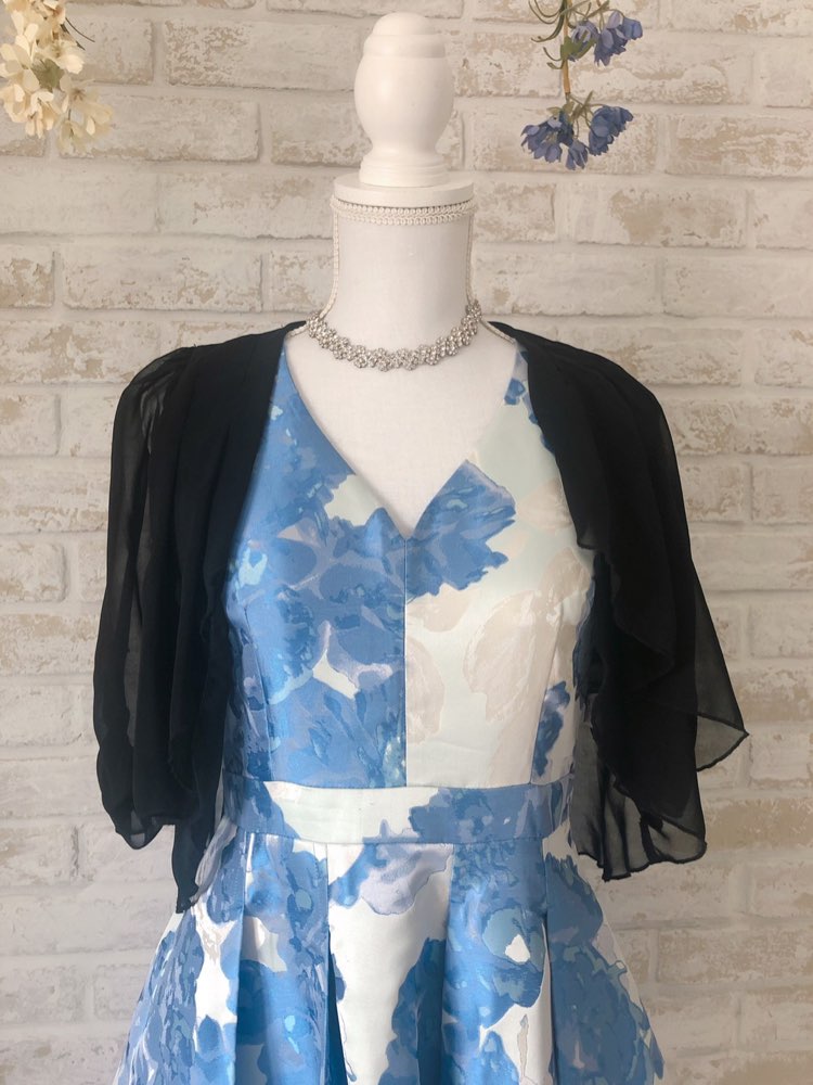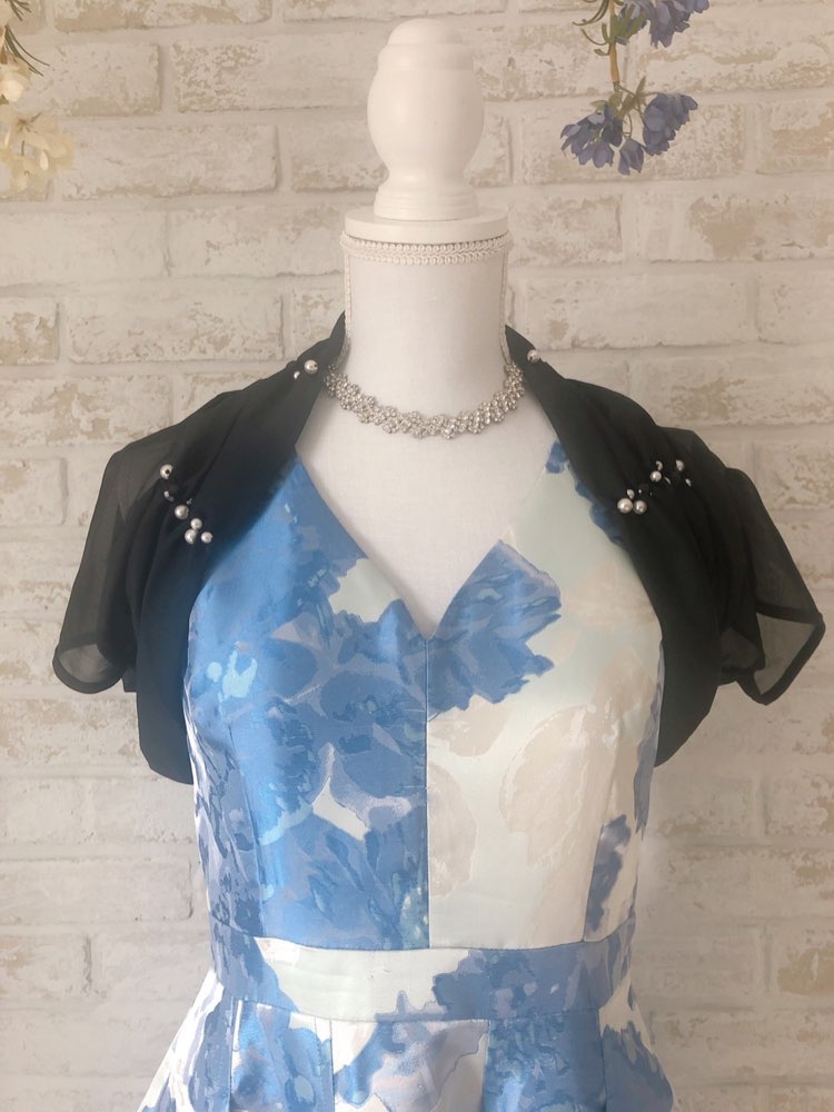 丈間短めレースデザイン付き薄手ブラックボレロ