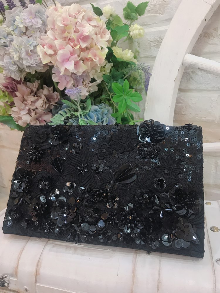 ブラック×キラキラフラワーとリーフのゴージャスス...