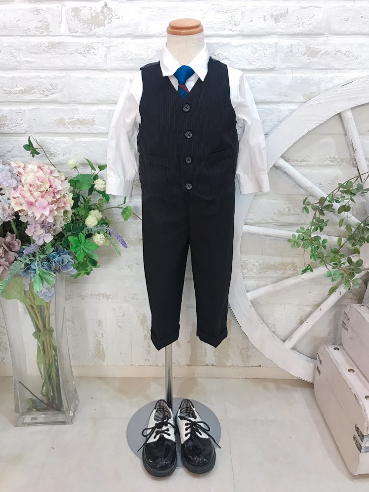 95-100cm男児ブラックベストパンツセットタキシードホワイトシャツ付き