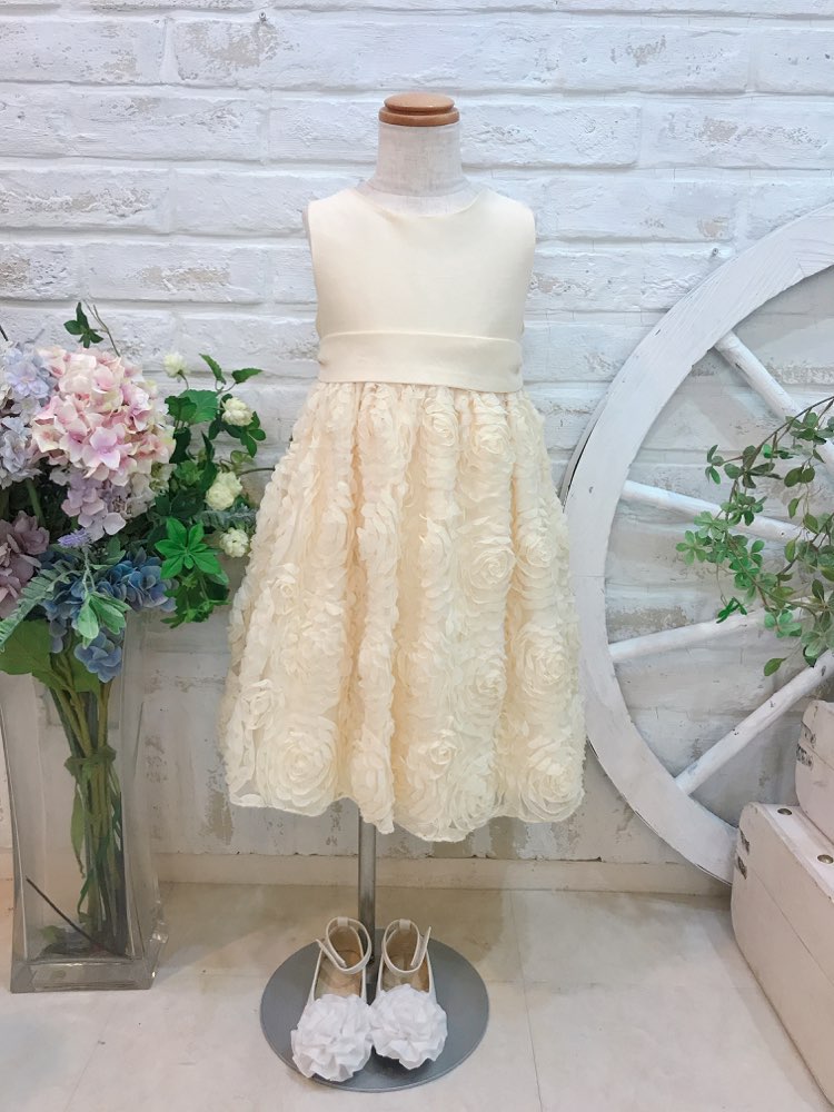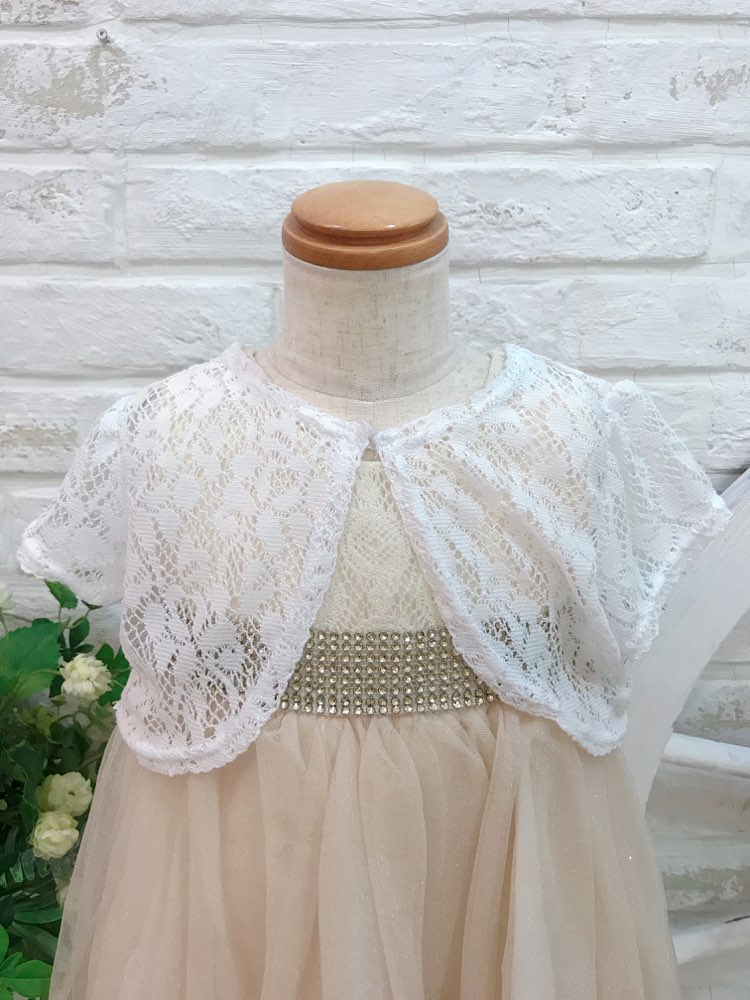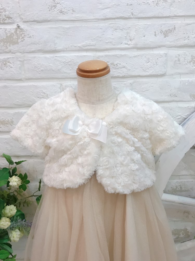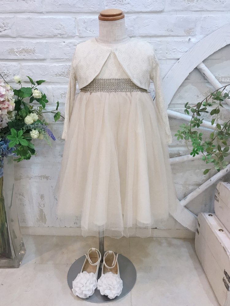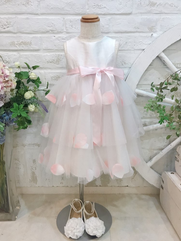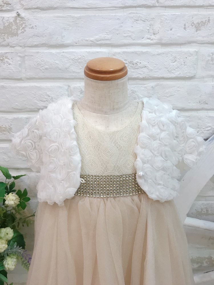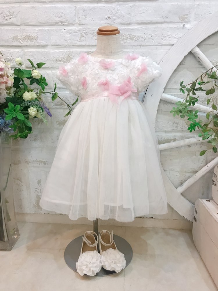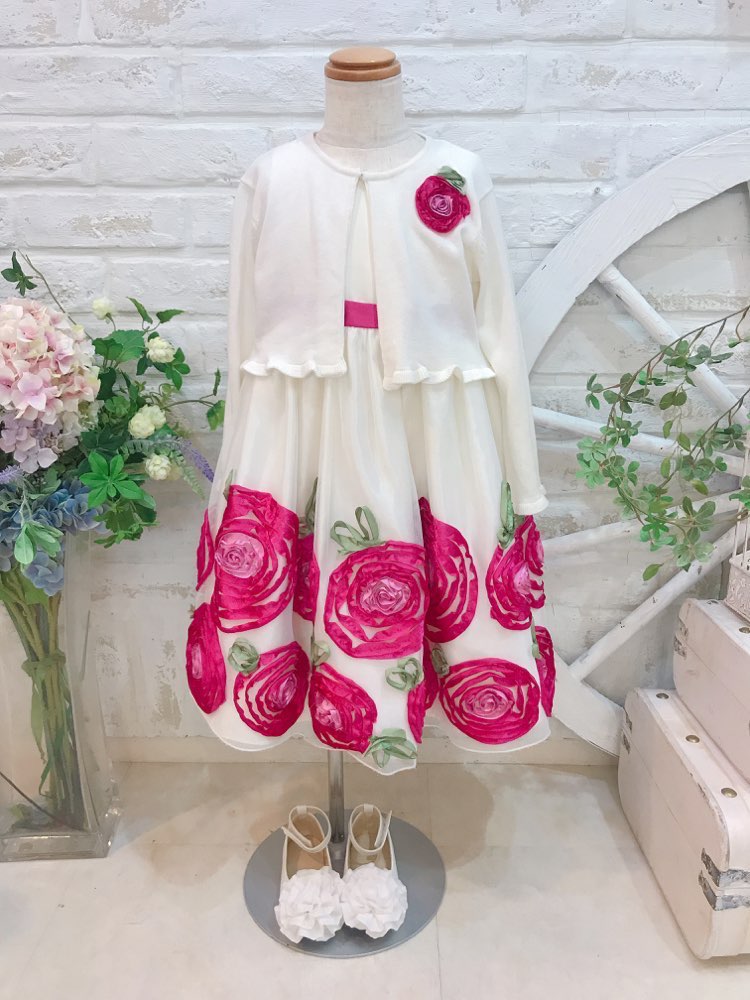 110cmホワイト×ピンクお花カーディガン付きドレス
