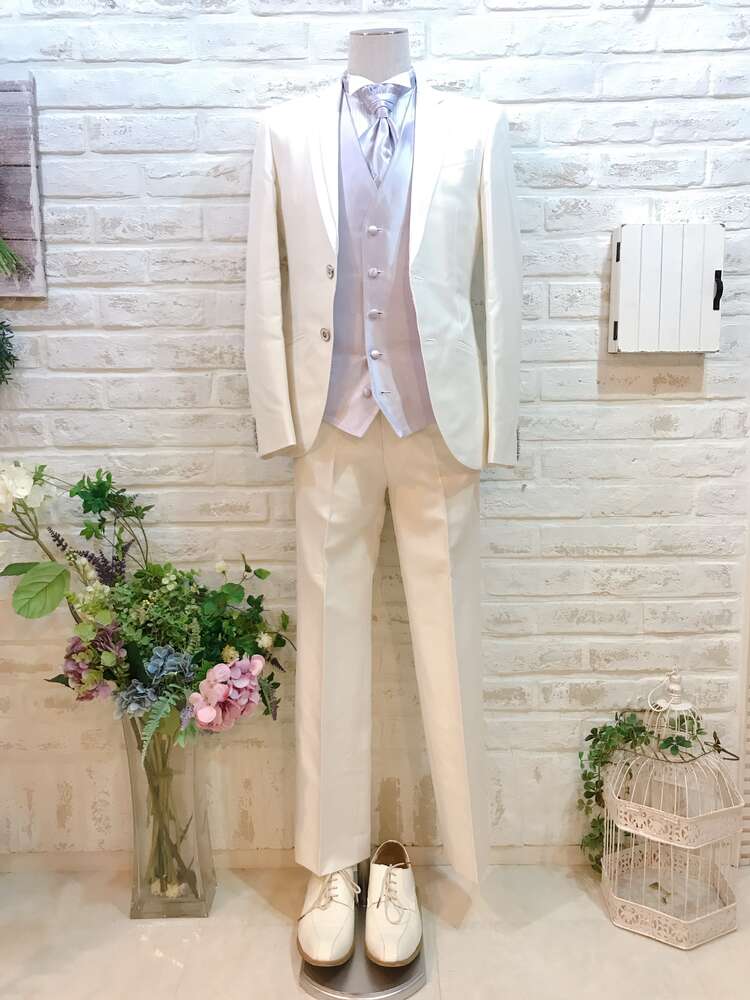 オフホワイトオフショルダーの袖ありファスナーウェ...