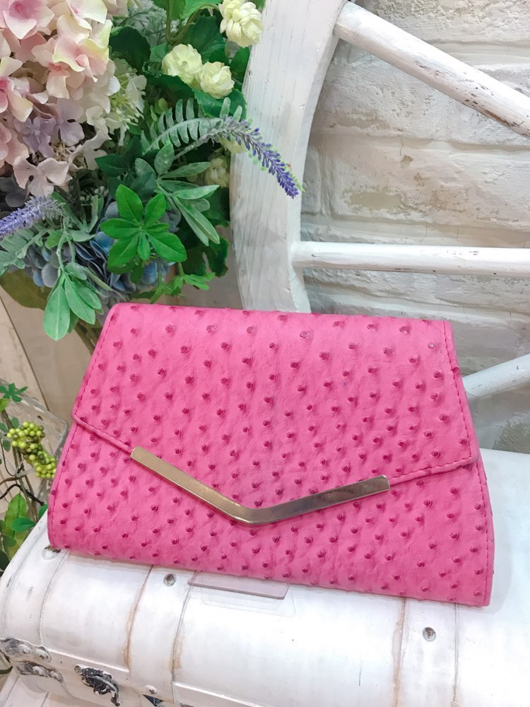 シャイニーピンクラウンド型クラッチバッグ