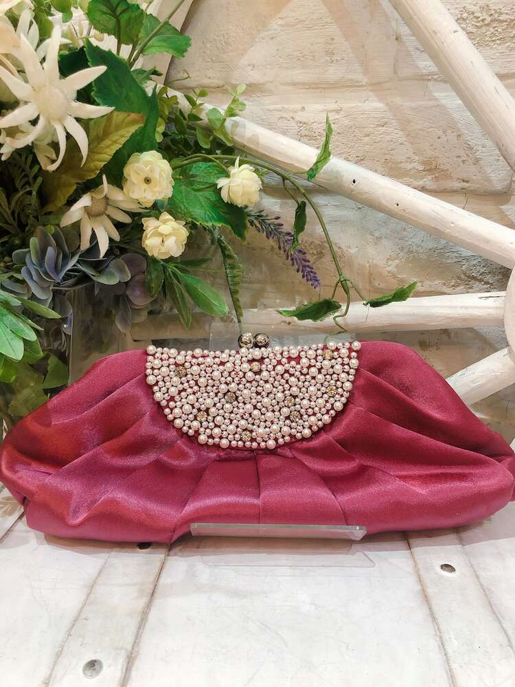 ローズカラーパール付きがま口バッグ