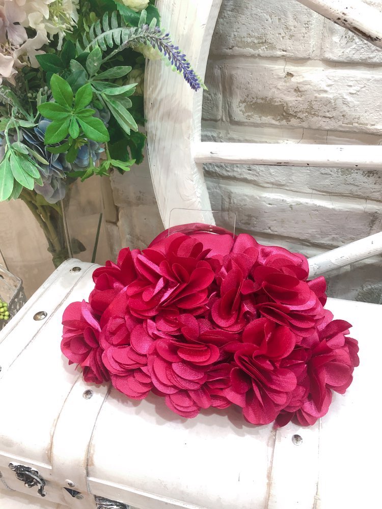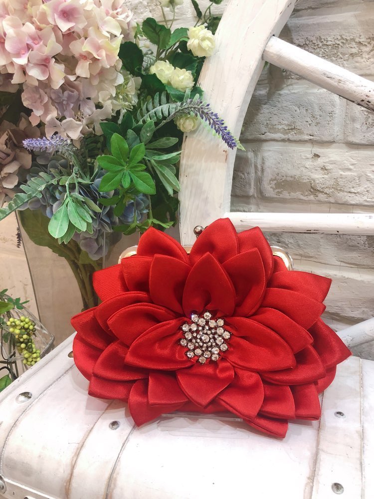 レッド花型がま口クラッチバッグ