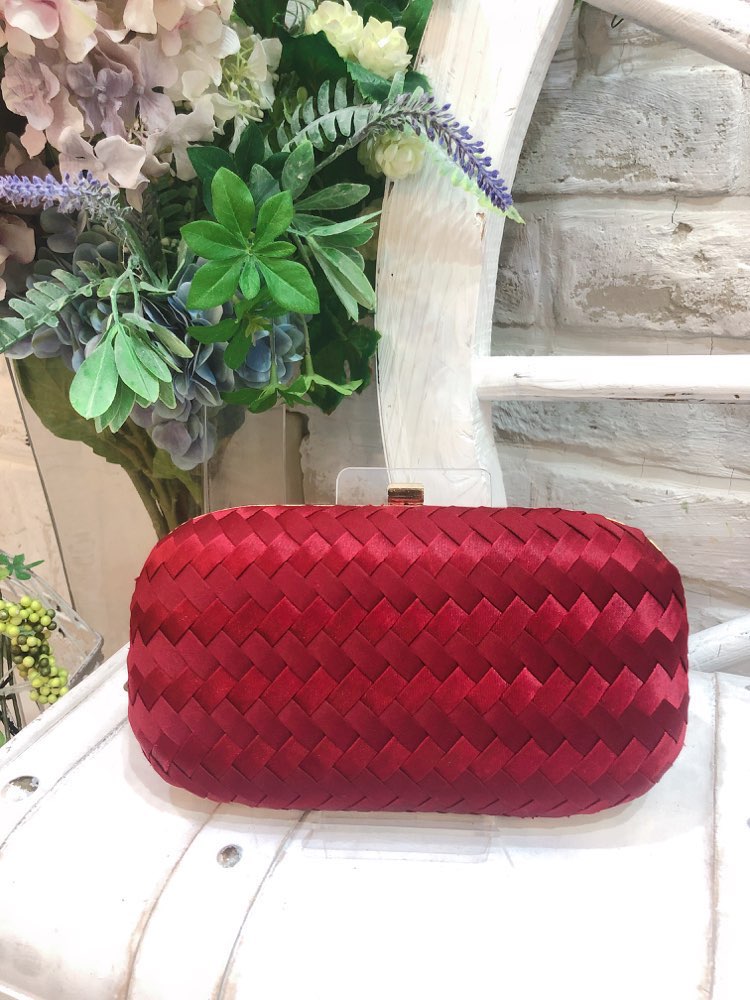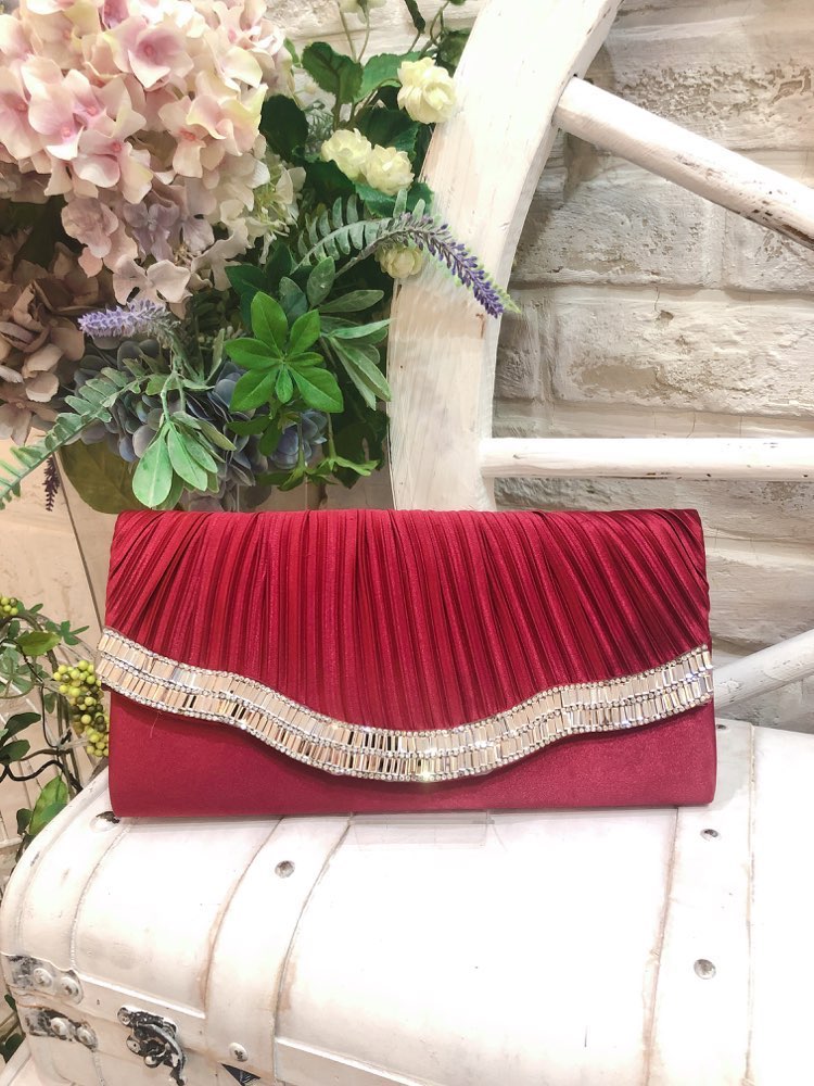 レッド波型ビジュ付きクラッチバッグ