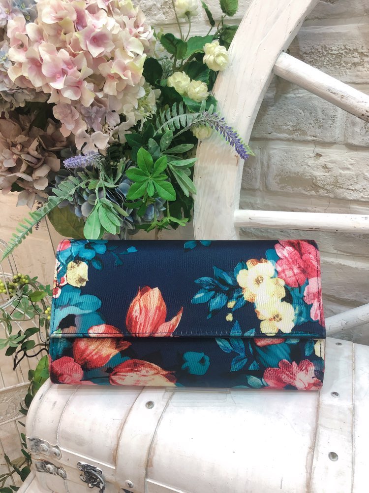 ネイビー花柄クラッチバッグ