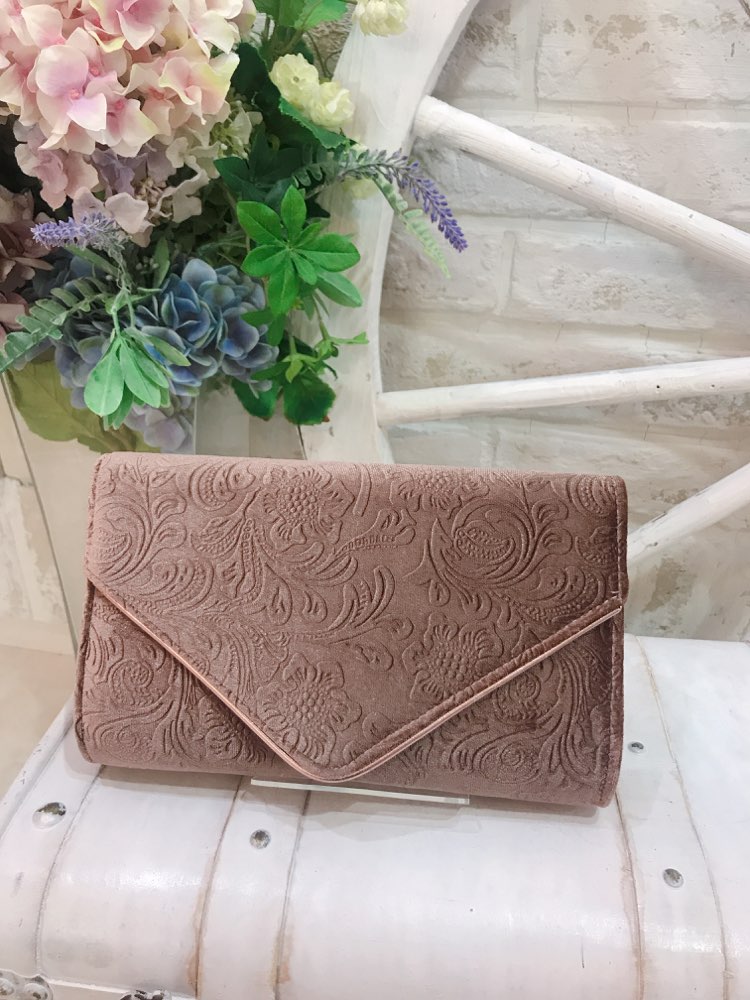 ピンクブラウンベロアペイズリー柄クラッチバッグ