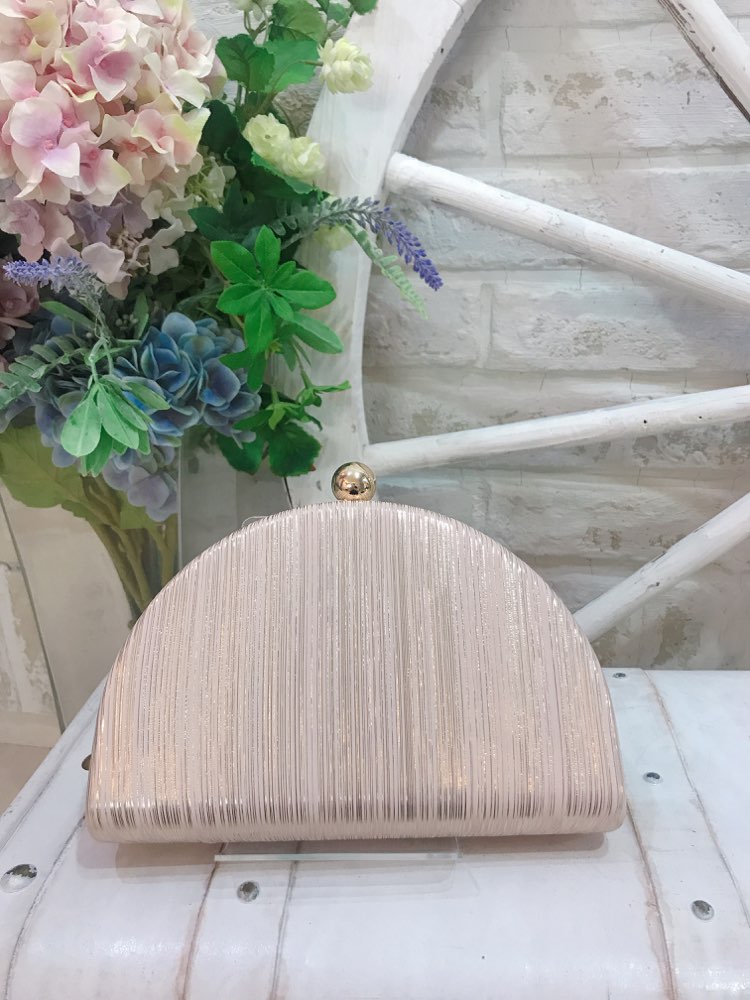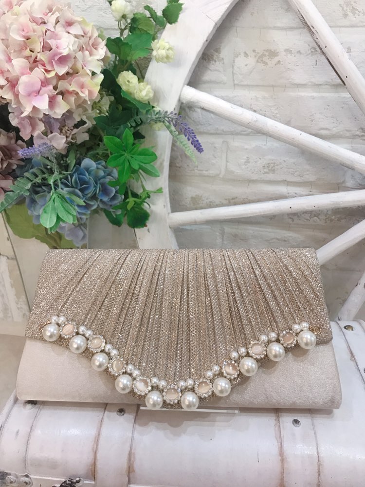 シャンパンベージュラメ地にパールビジュ付きクラッ...