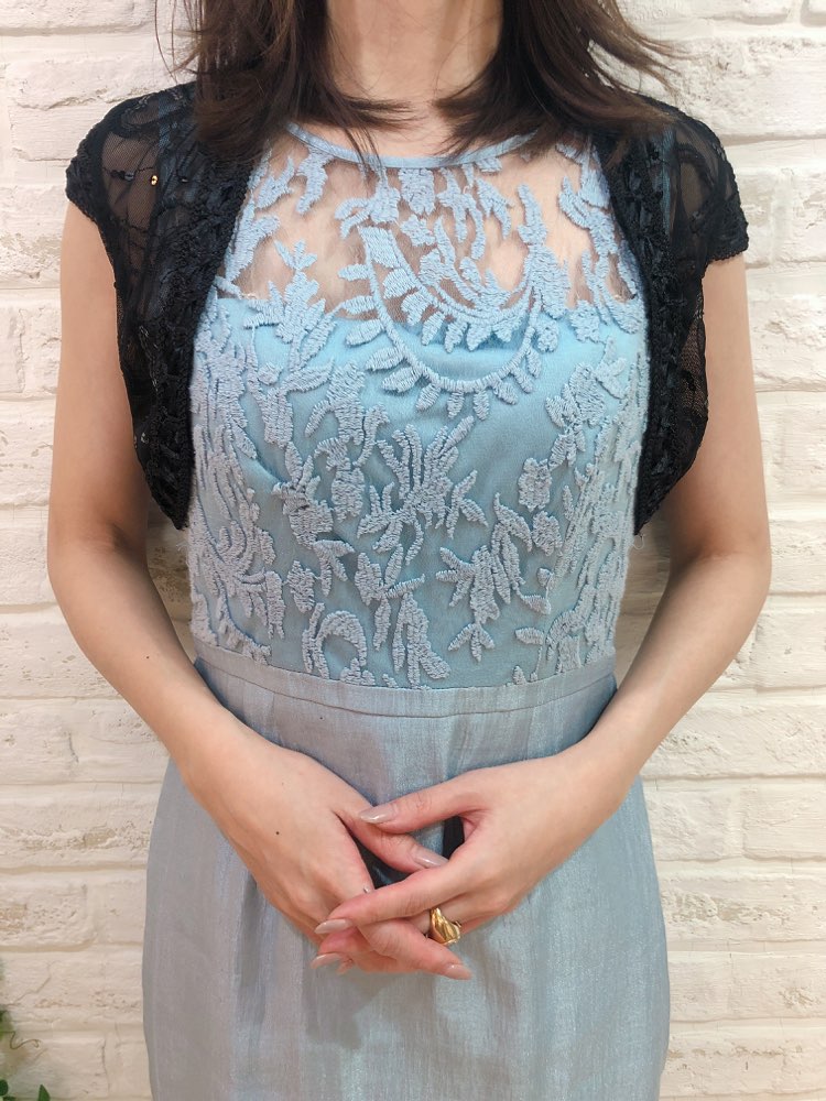 黒色シフォン素材ビジュ付ボレロ
