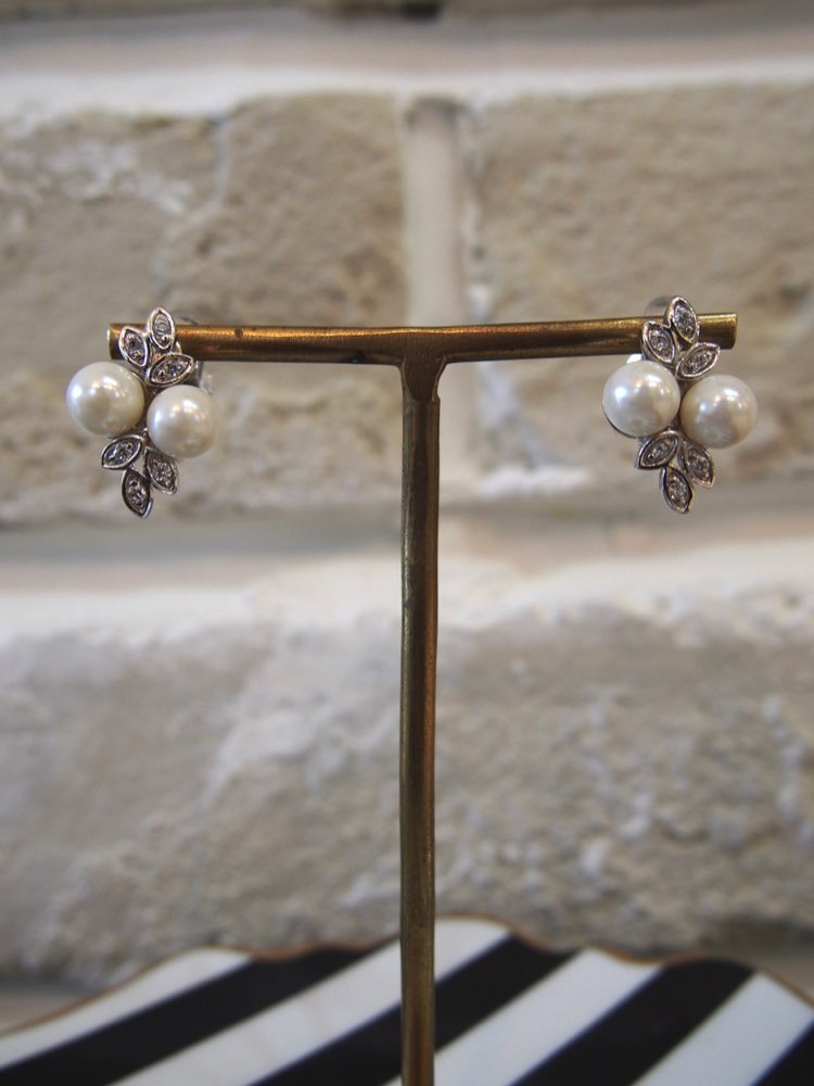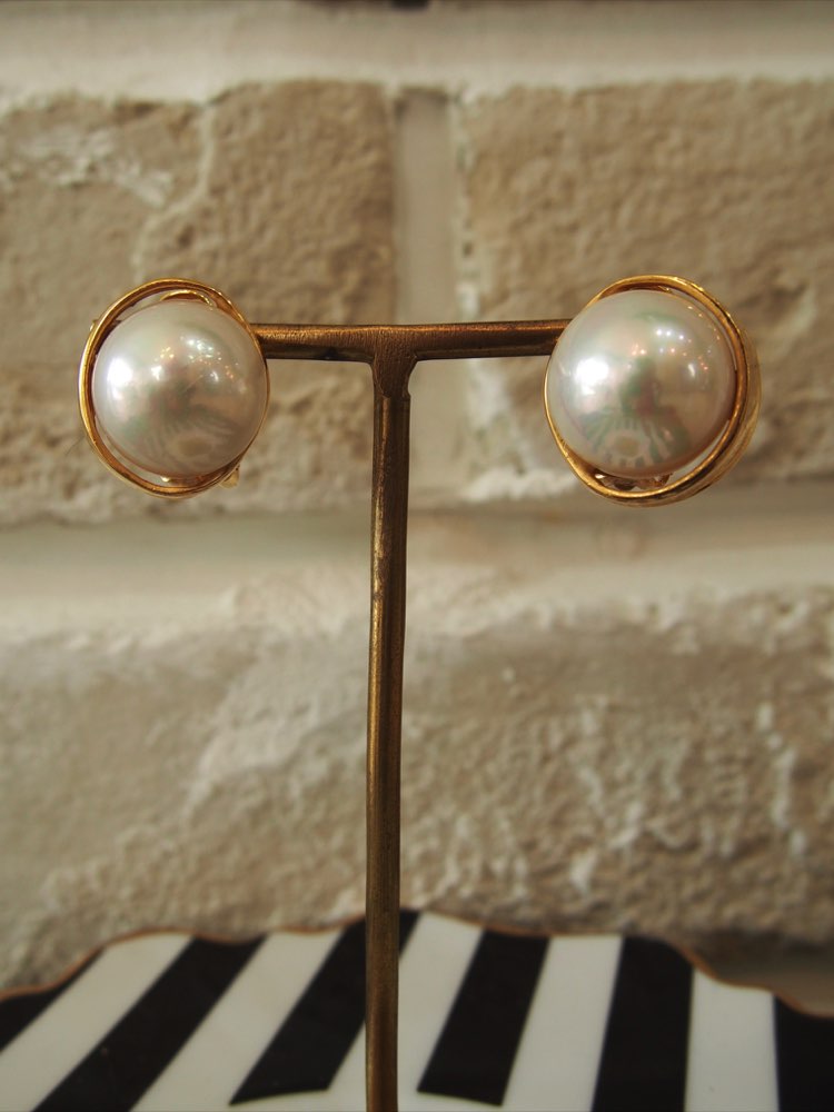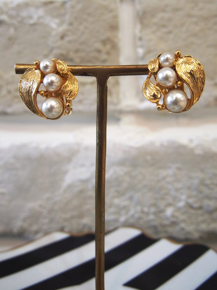 ゴールドレースパーツコットンパール風ビーズイヤリング