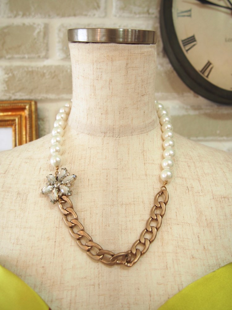 フラワービジューチェーンミックスパールネックレス