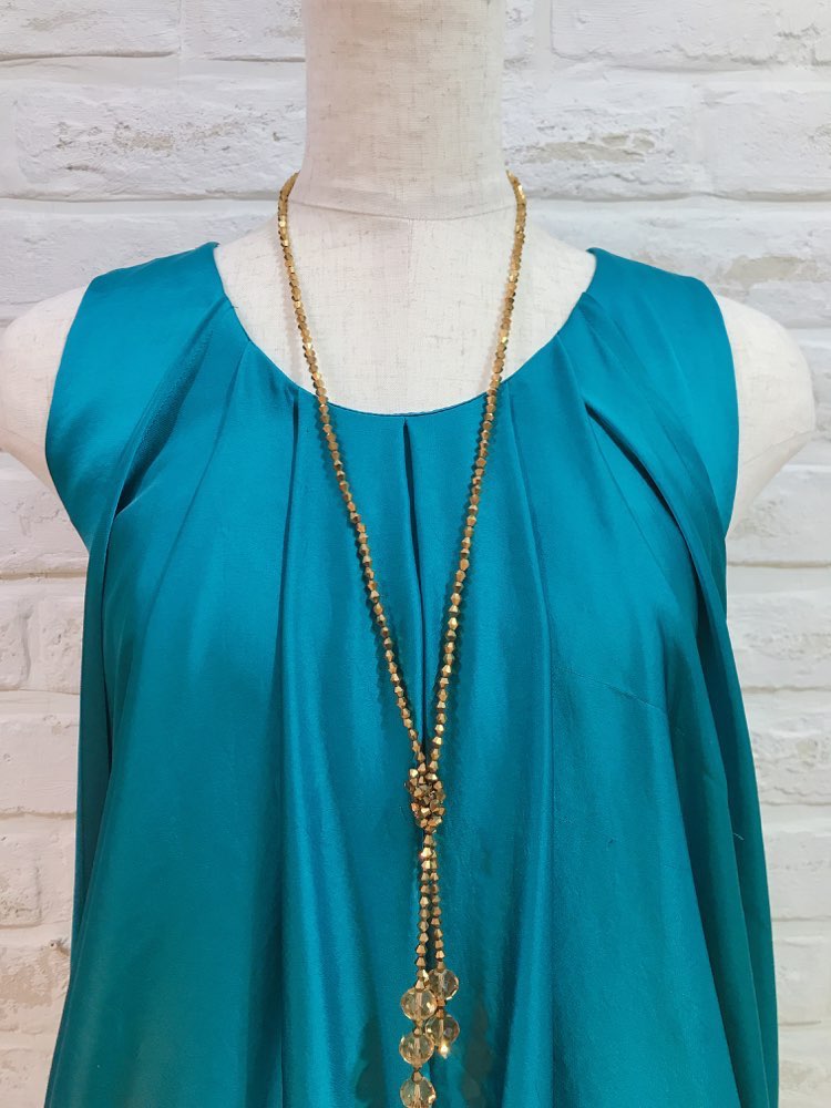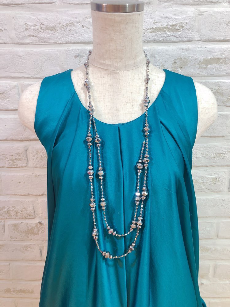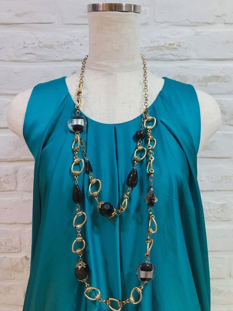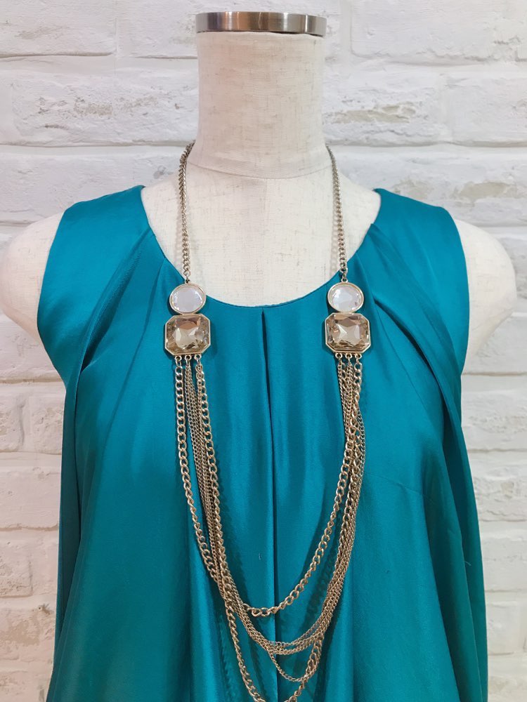 シルバーデかビジュー付きゴールドチェーン4連ロングネックレス