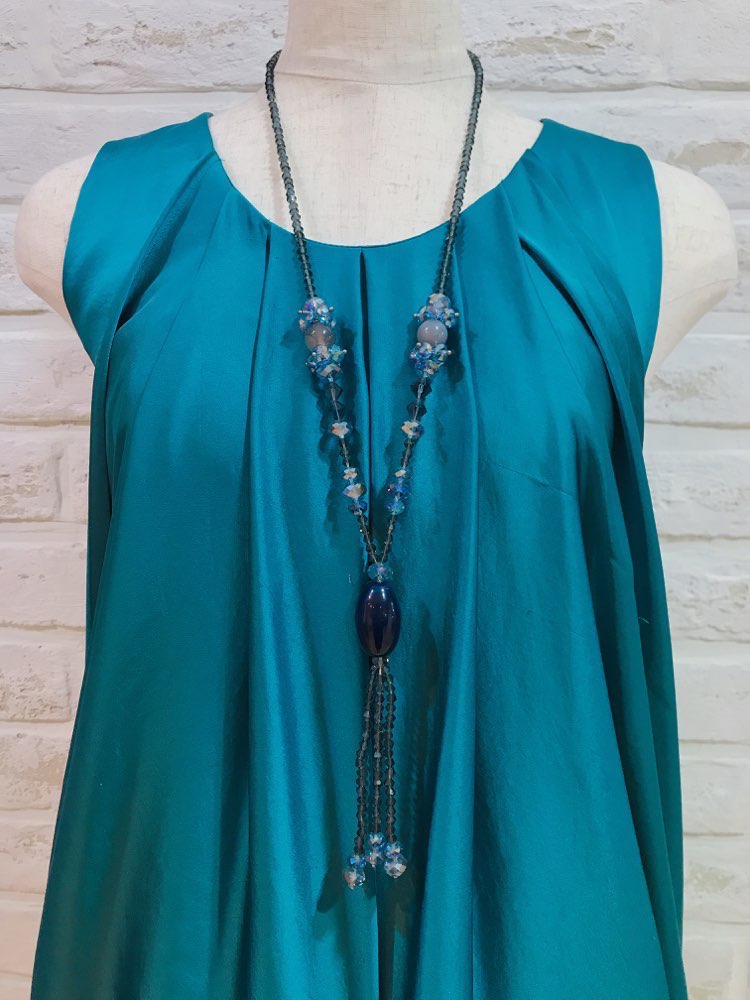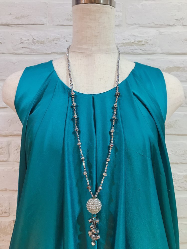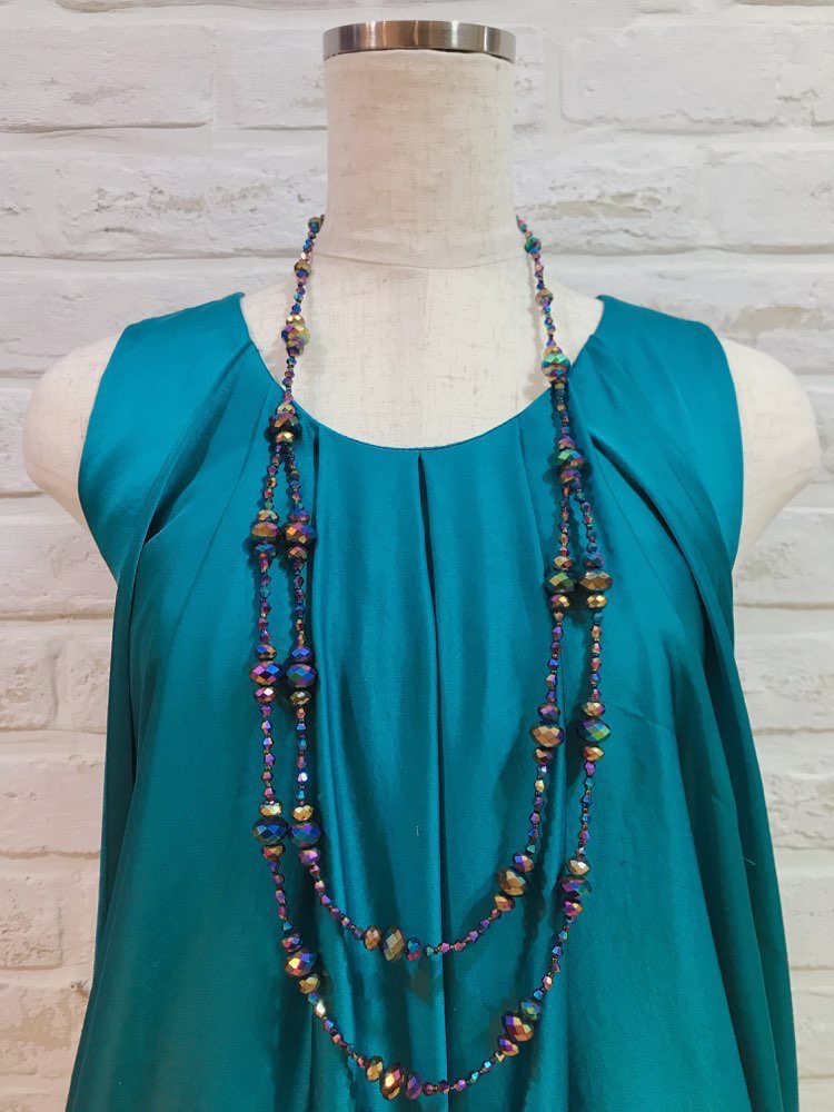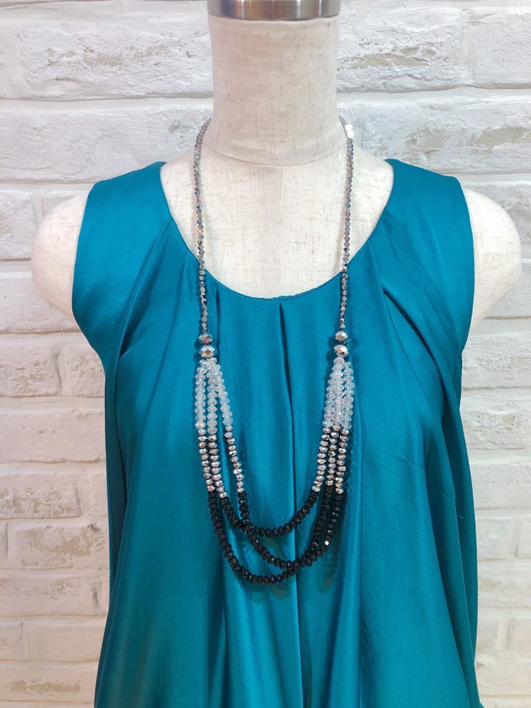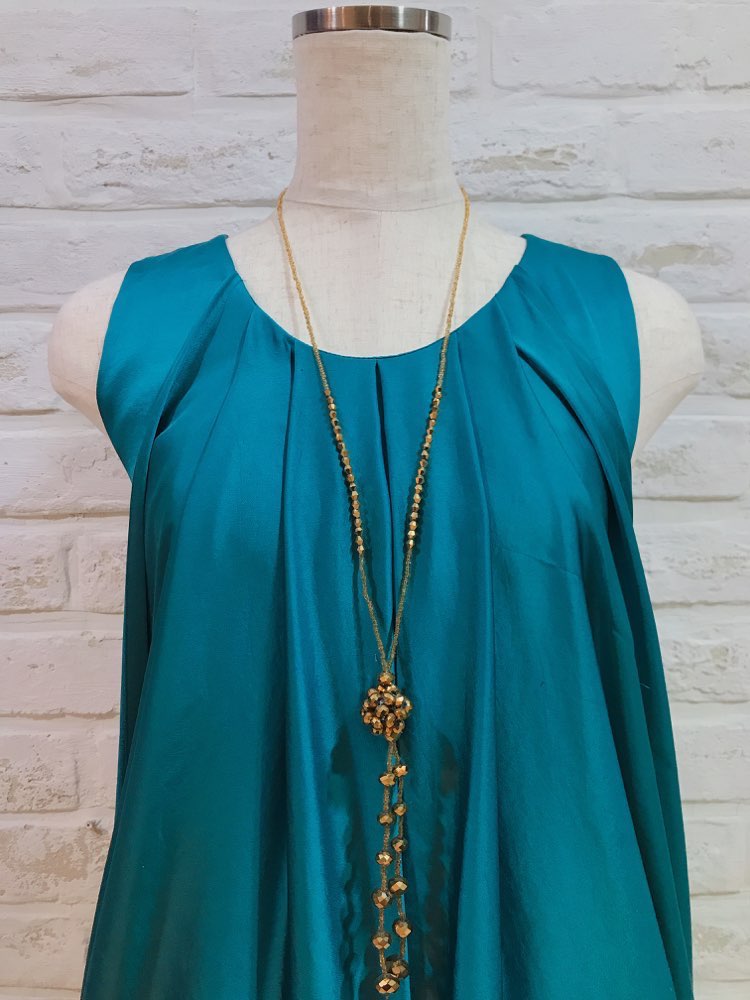 シルバーデかビジュー付きゴールドチェーン4連ロングネックレス