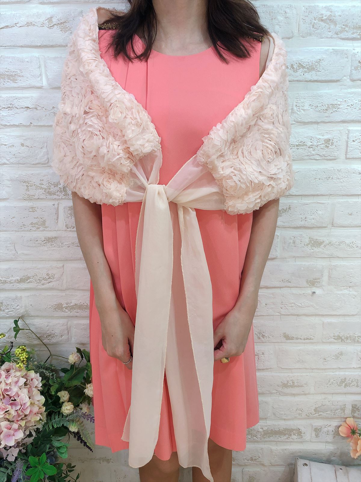ライトピンク×オシャレなお花の刺繍レースのストール