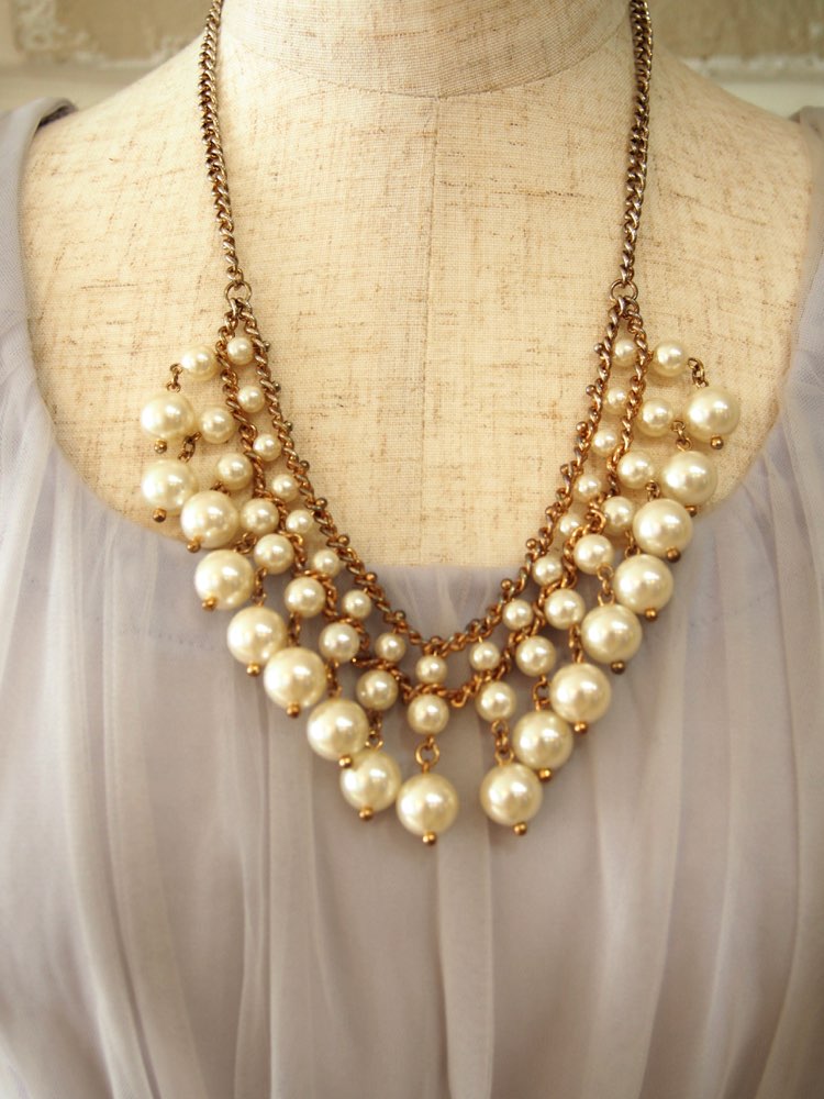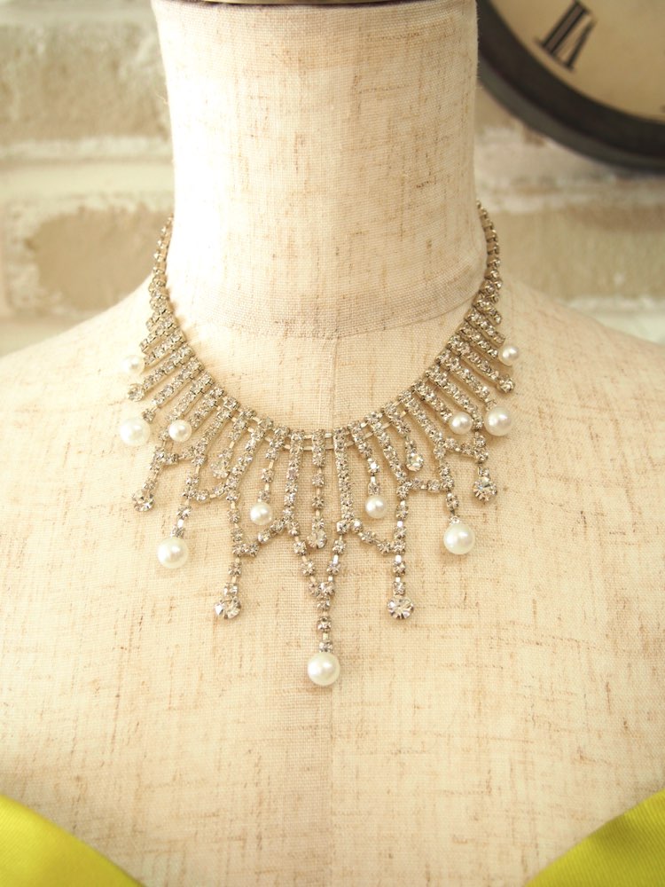 シルバーストーンスカラップシャンデリアパールネッ...