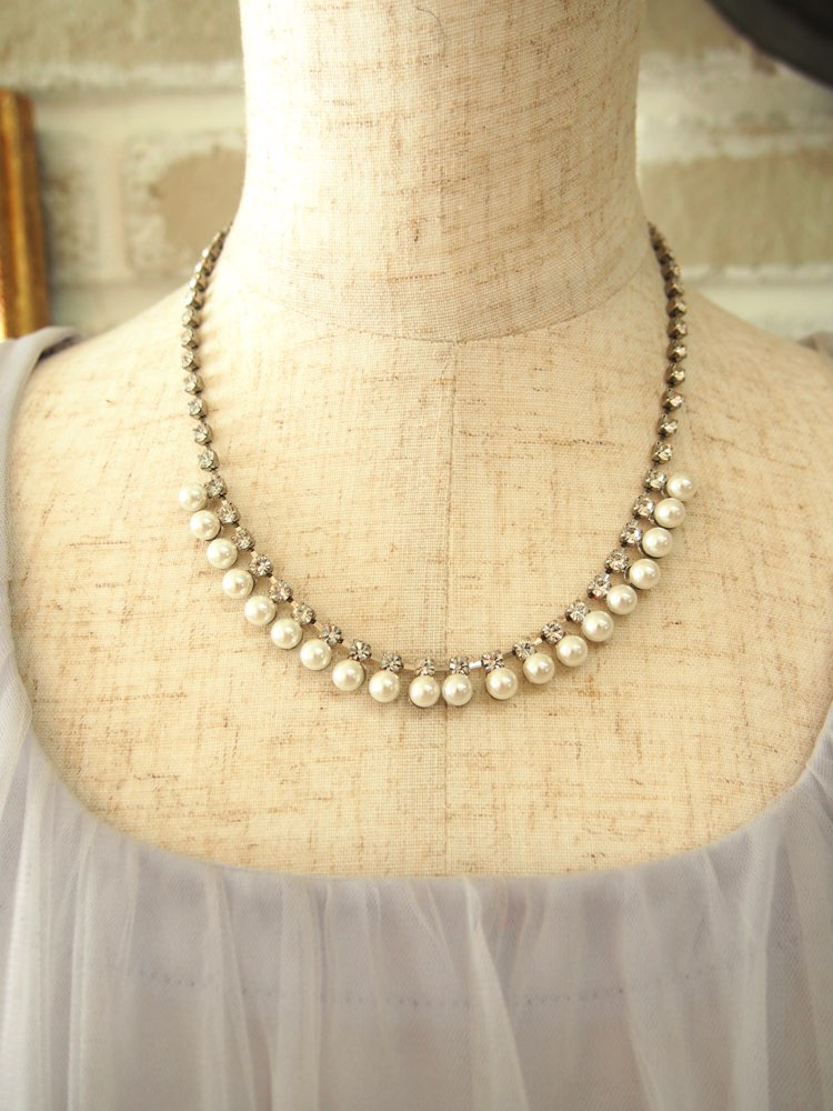 ラインストーンミニパール付ネックレス<silve...