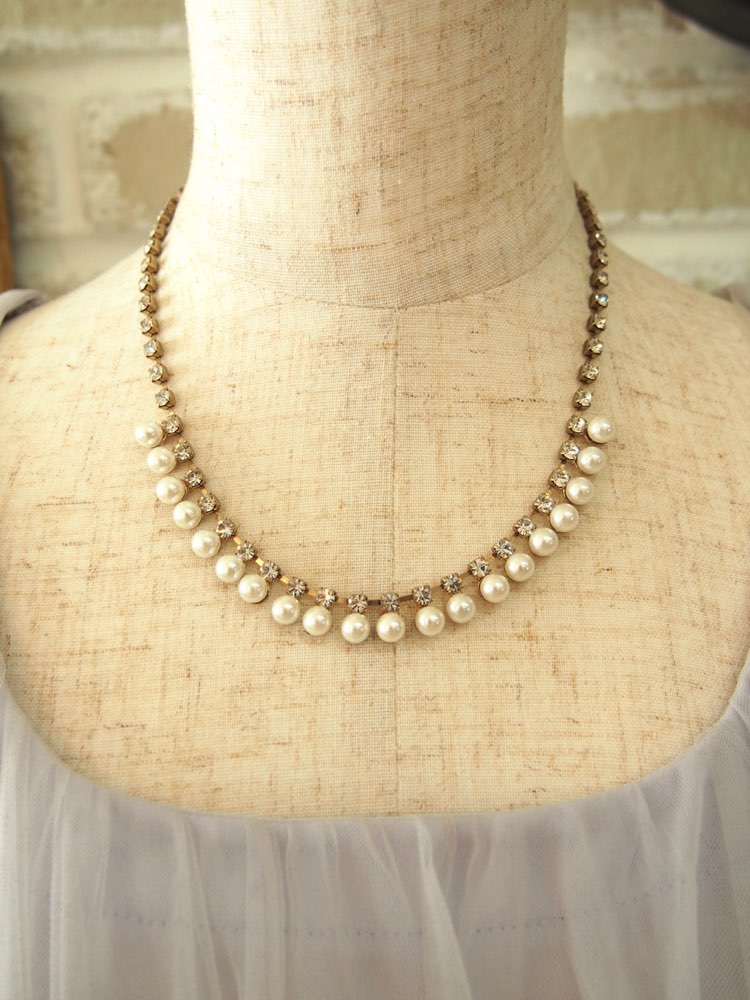 ラインストーンミニパール付ネックレス<gold>