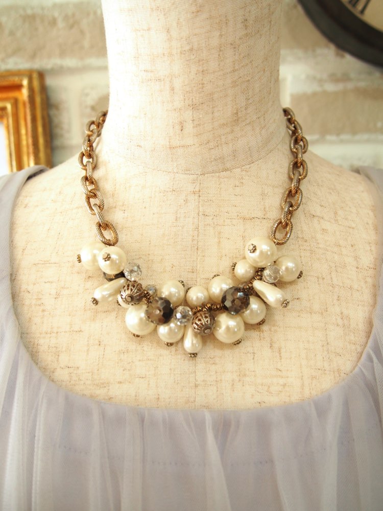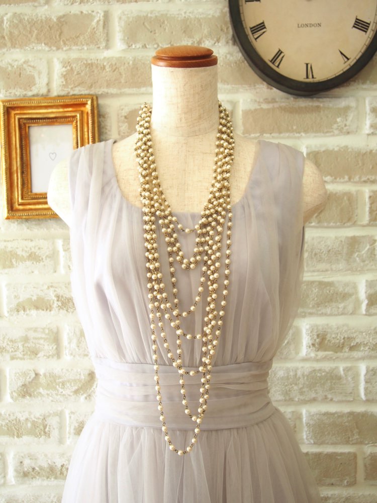 パール・ビーズチャームチャンキーチェーンネックレ...