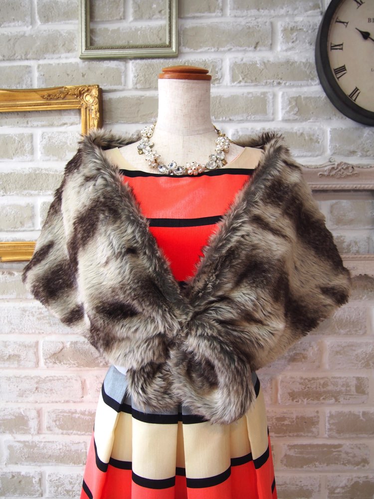 アイボリーストライプフェイクファーショール