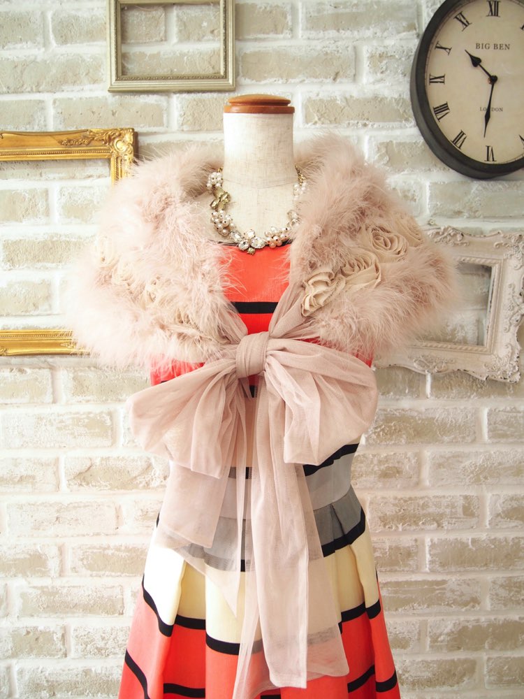 ピンクベージュフラワーチュールフェザーショール