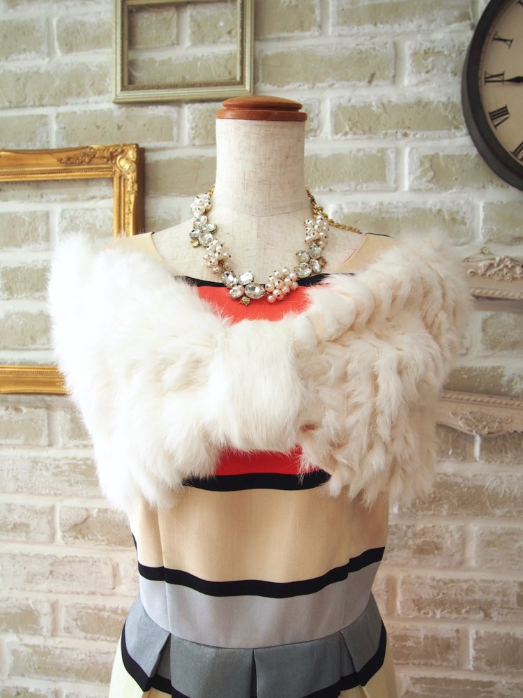ホワイトラビットファーリボンニットケープ