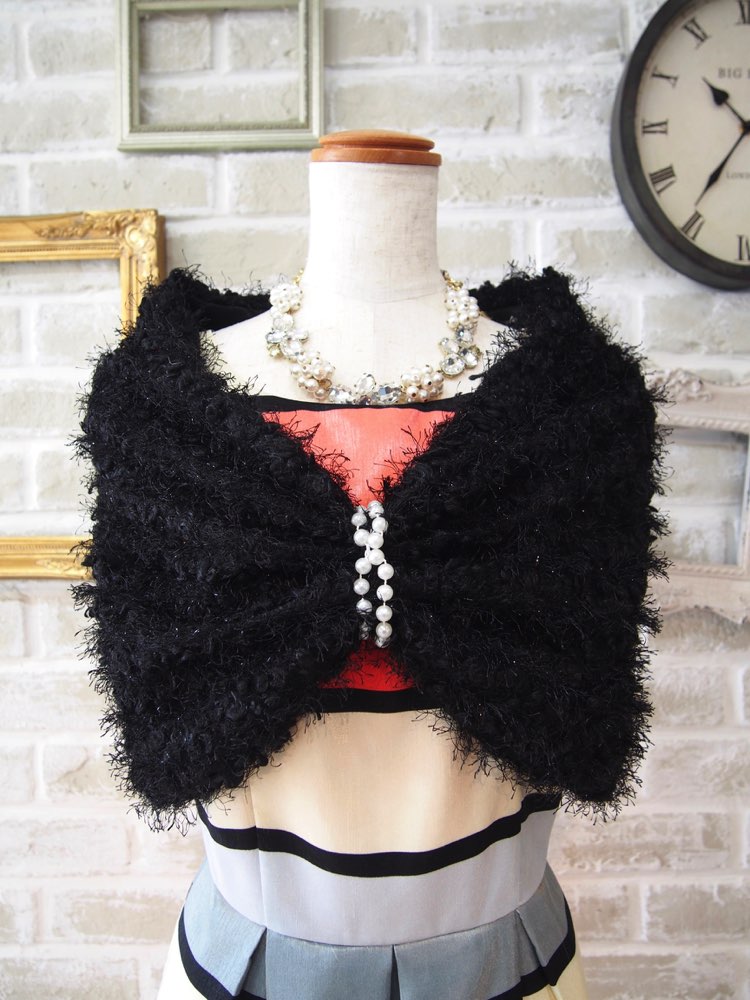 ブラックプードルフリンジミックスリボンケープ