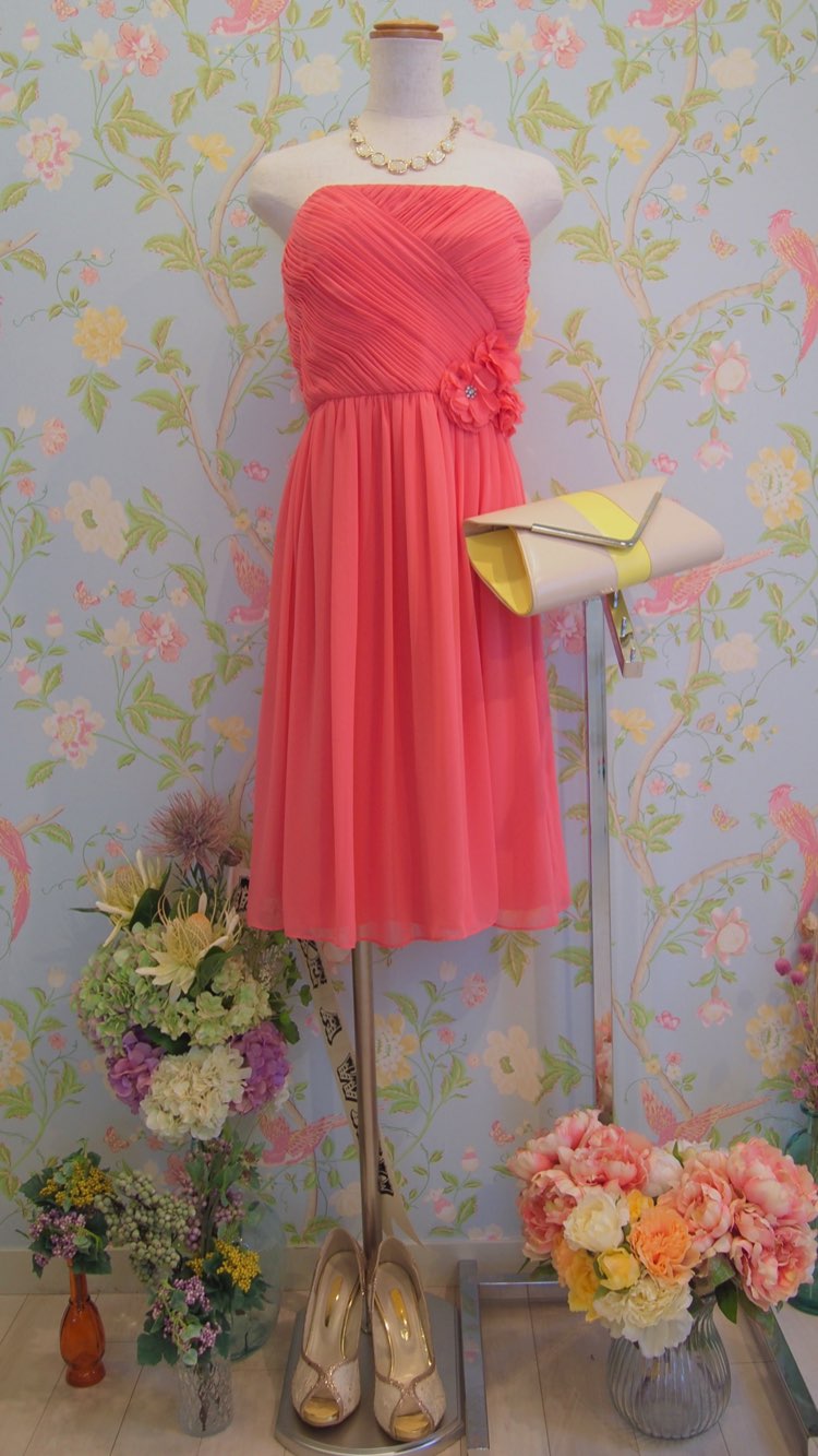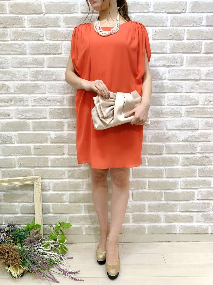 コーラルバックノットデザインシフトドレス