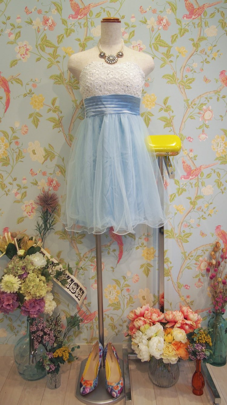 ホワイト×パステルブルーバイカラーフラワーベアドレス