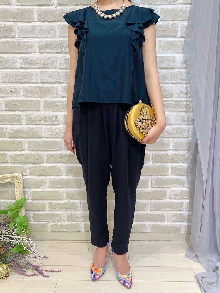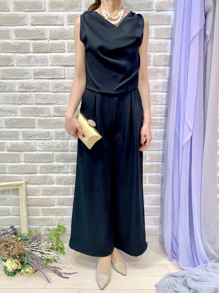 ネイビーフリルスリーブパンツドレス