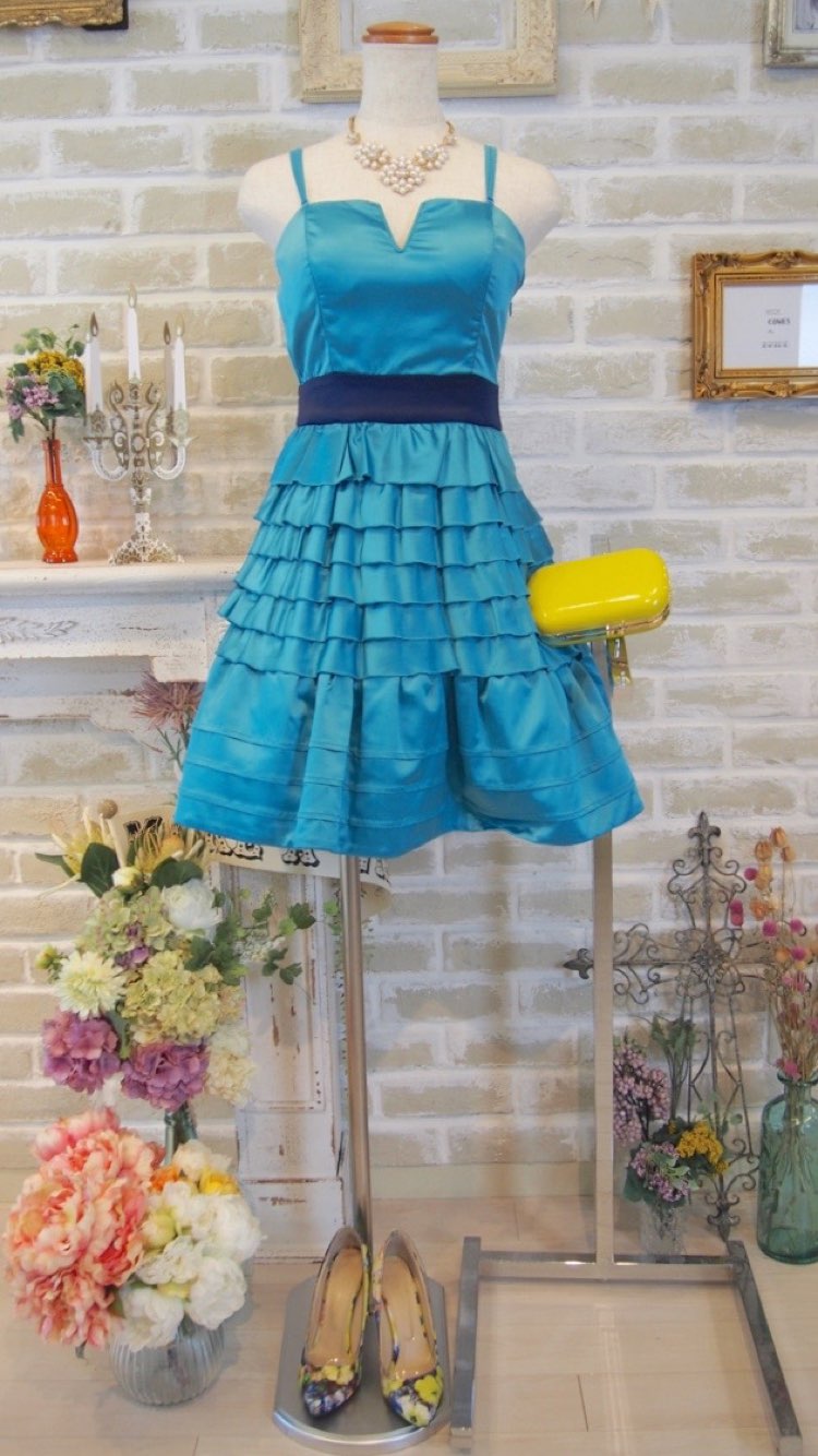★Julie Dillon ブルーカシュクールVネックS/Sドレス