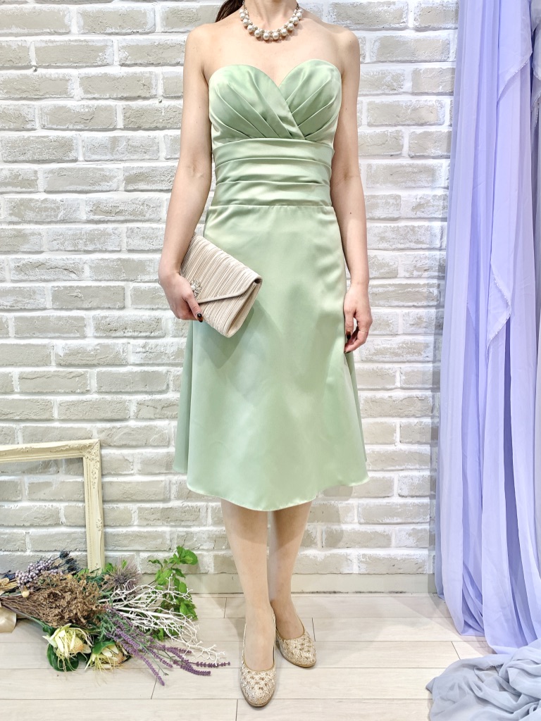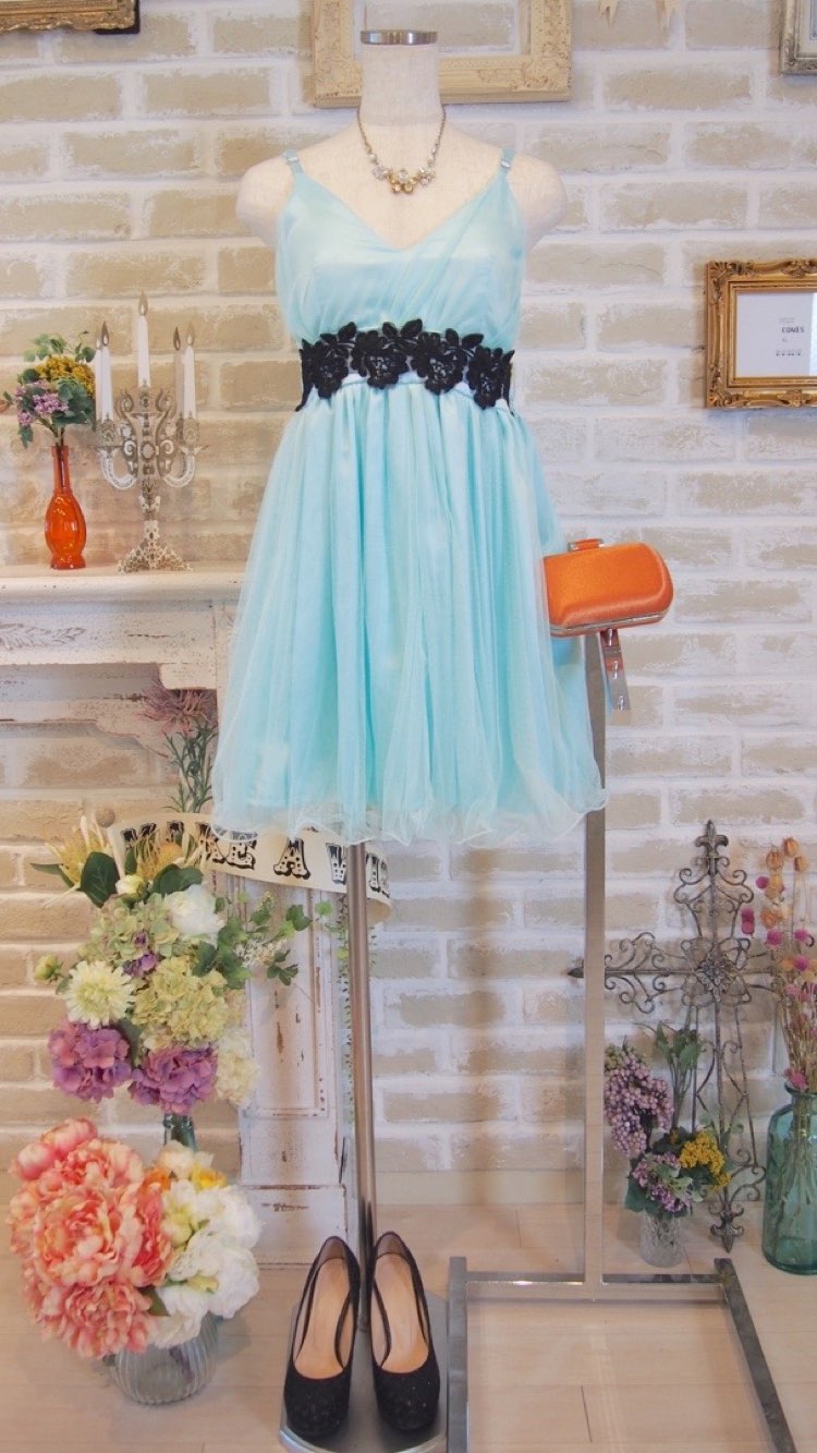 ★CINDERELLA ミントグリーンコサージュミディベアドレス