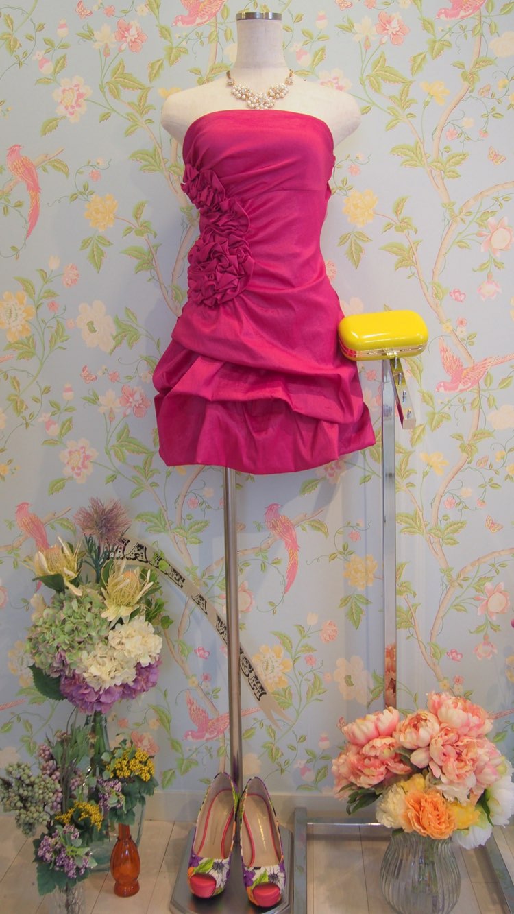 ★フューシャフラワータイトバルーンSKミニベアドレス