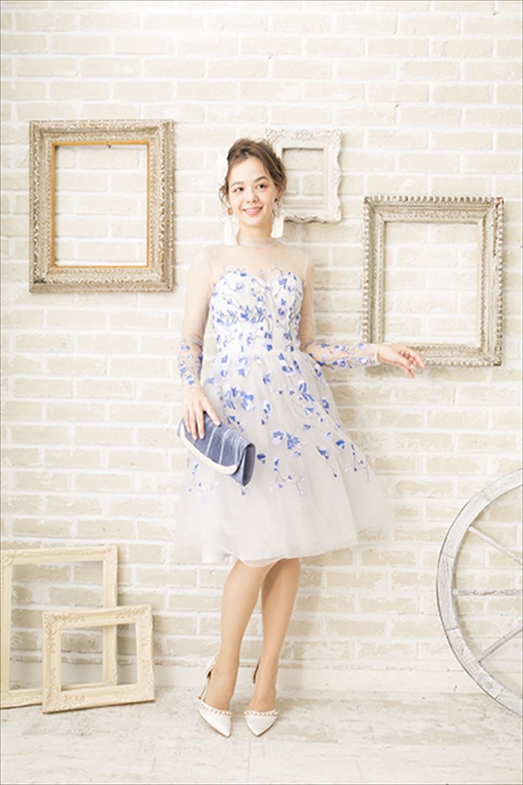 ロングスリーブお花ブルードレス