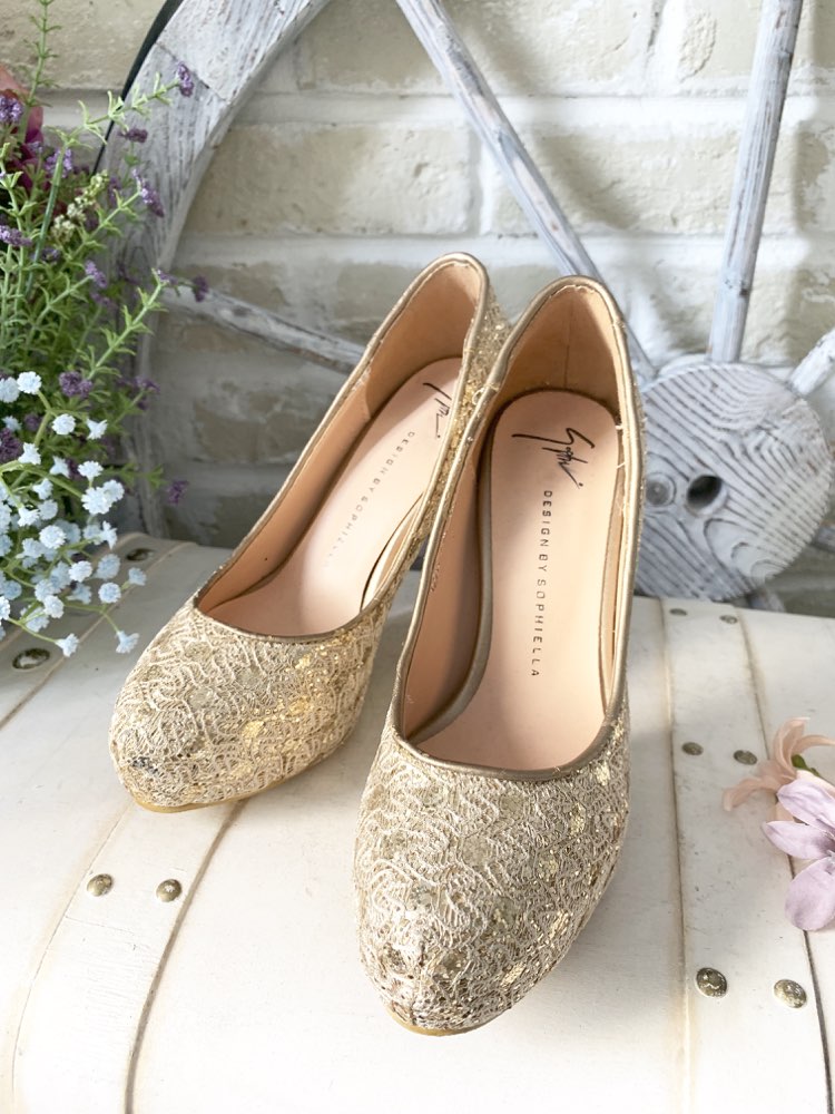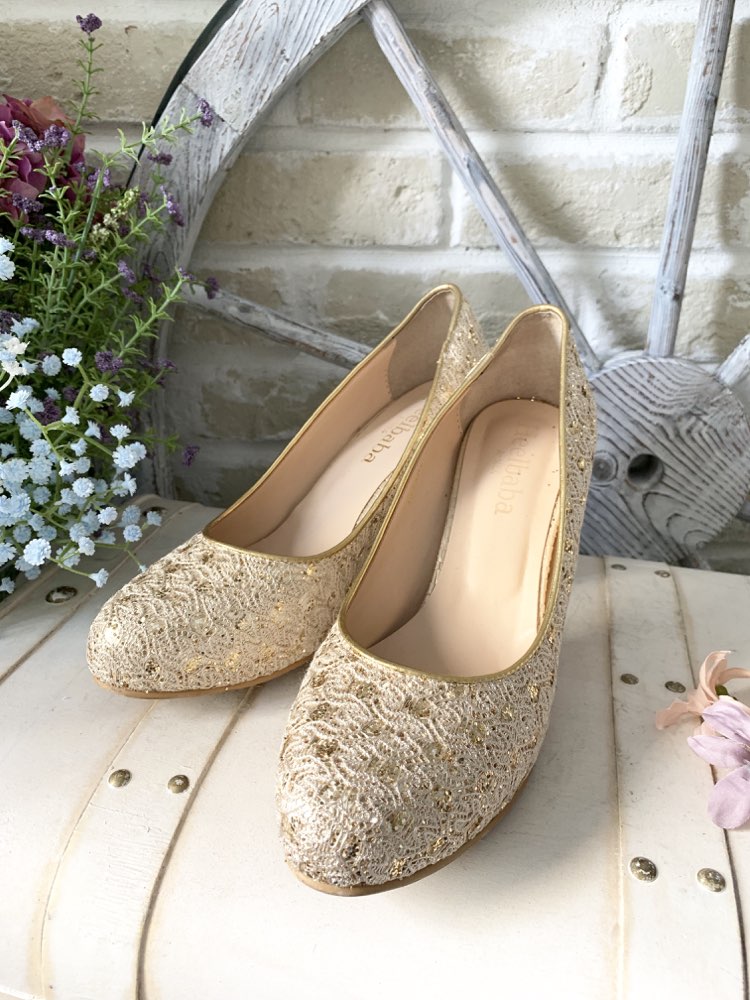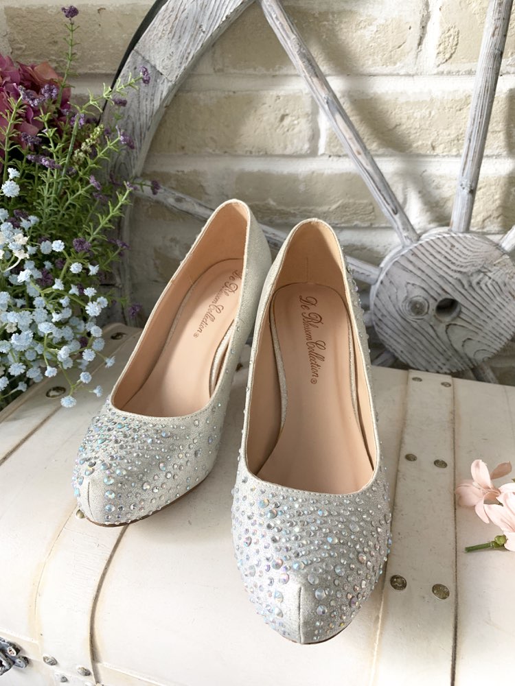 De Blossom Collection 大粒ビジュー付きシルバーパンプス