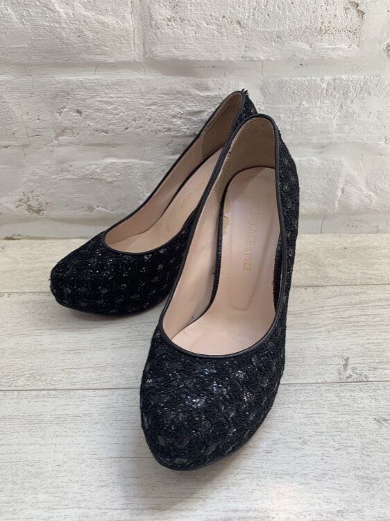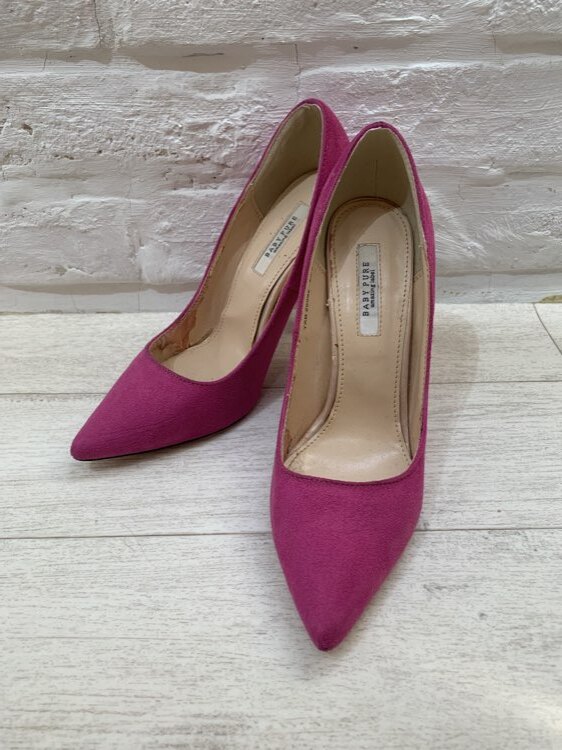ピンク×ベージュフロントしぼりオープントゥパンプ...