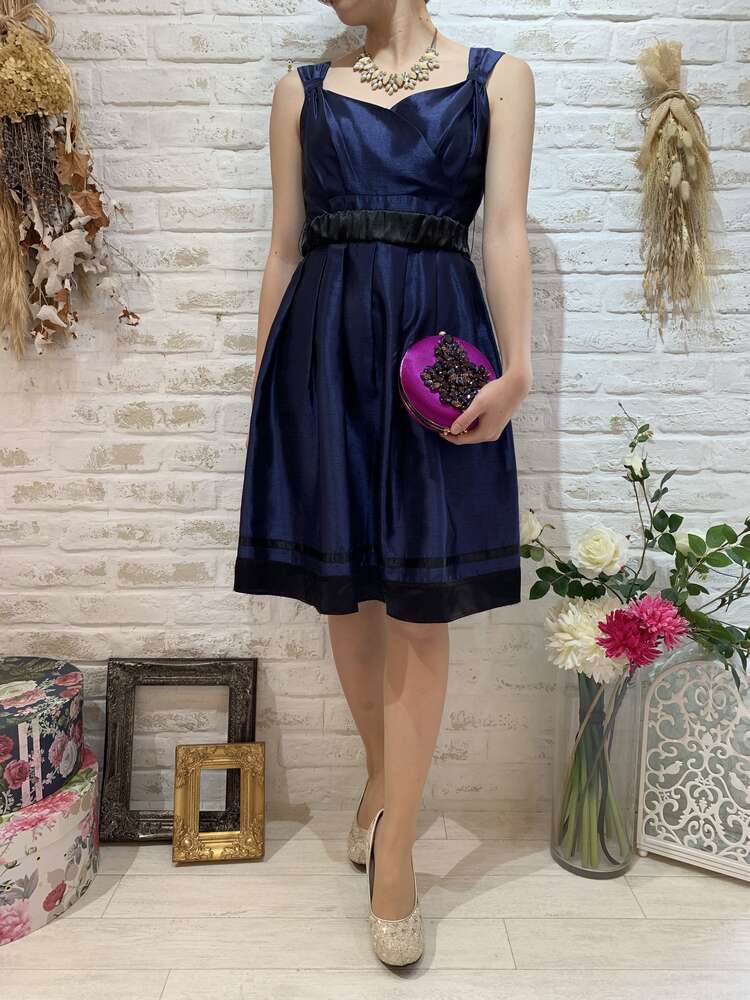 ネイビーブルーウエストゴムアンクル丈ドレス