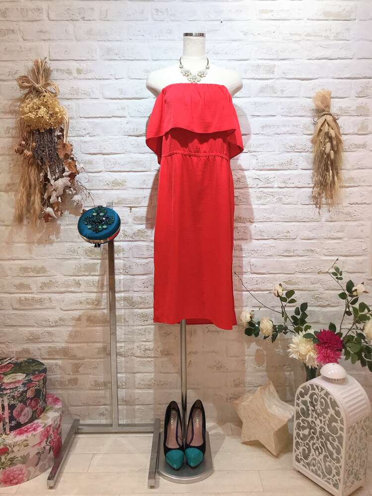 胸元ビジューハートカットロングベアドレス(ピンク)