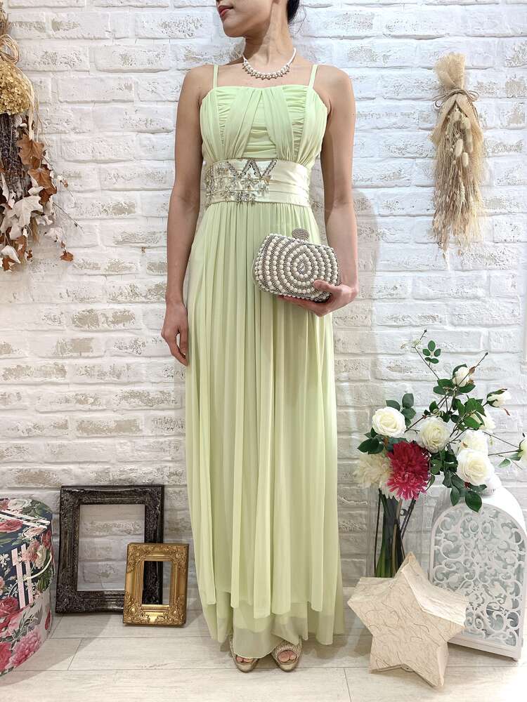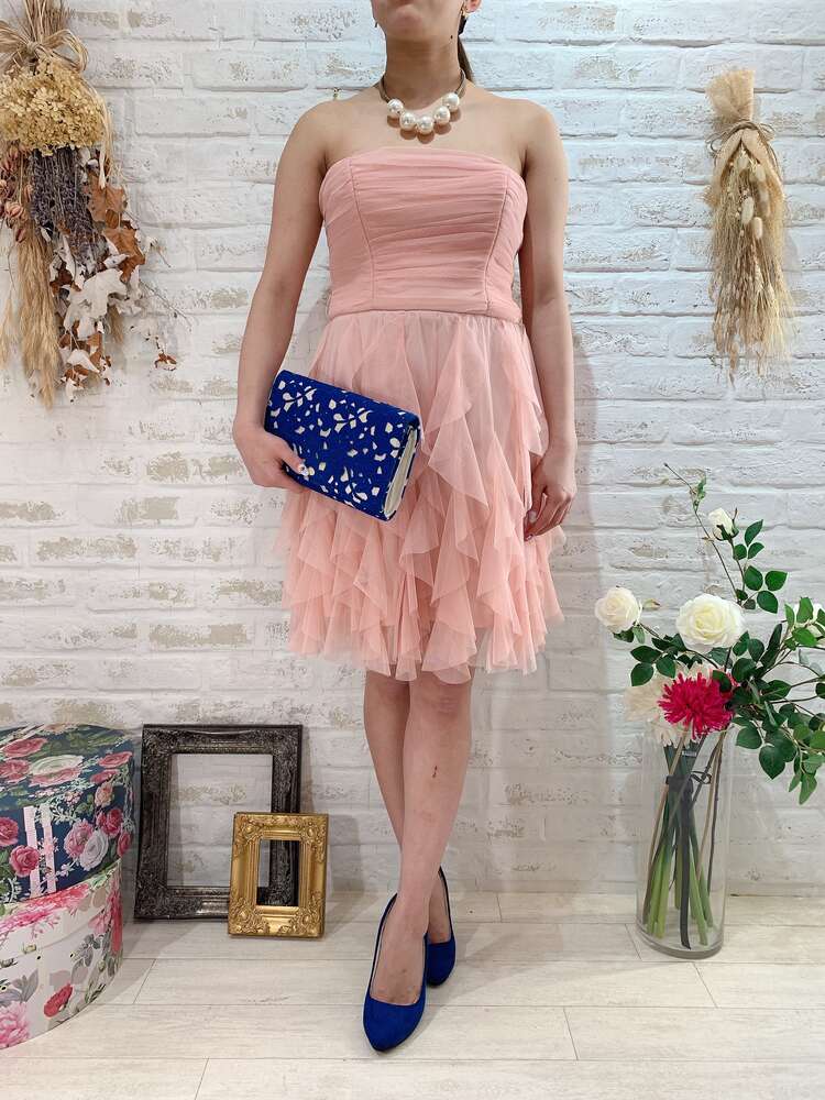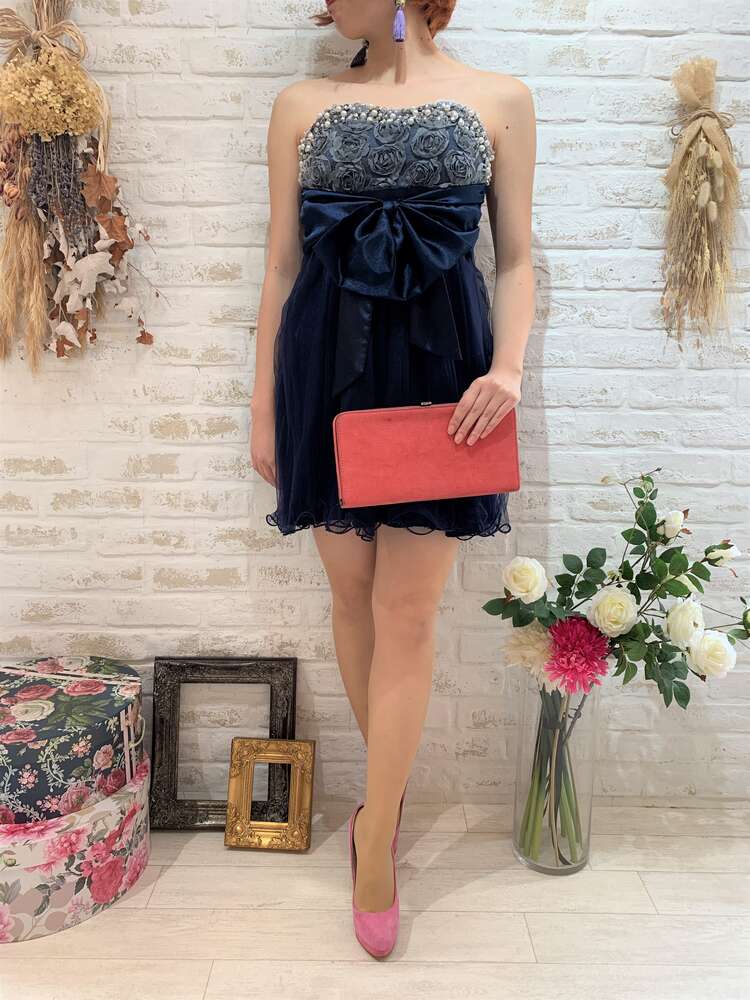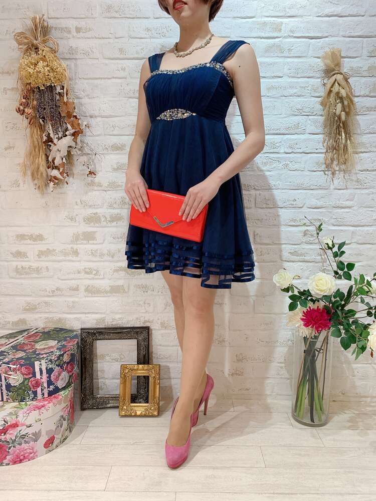 2WAY肩有ウエスト&胸元ビジュードレス(ネイビー)