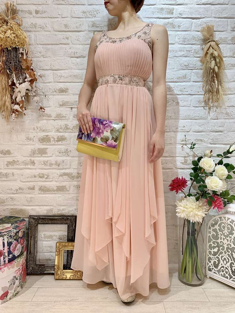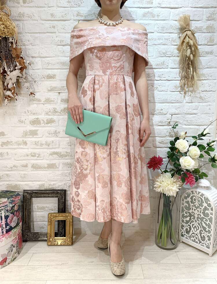 フレンチスリーブレースボリュームスカートドレス(ゴールド)