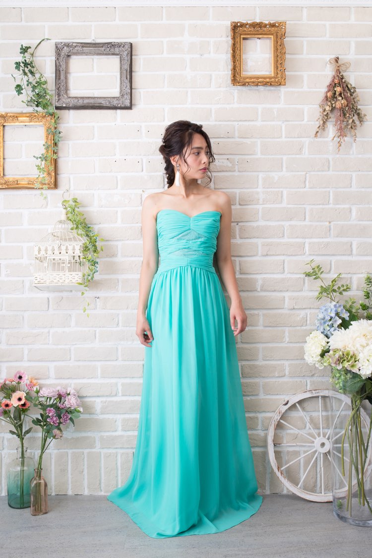 ミントグリーンパールビジューAラインドレス