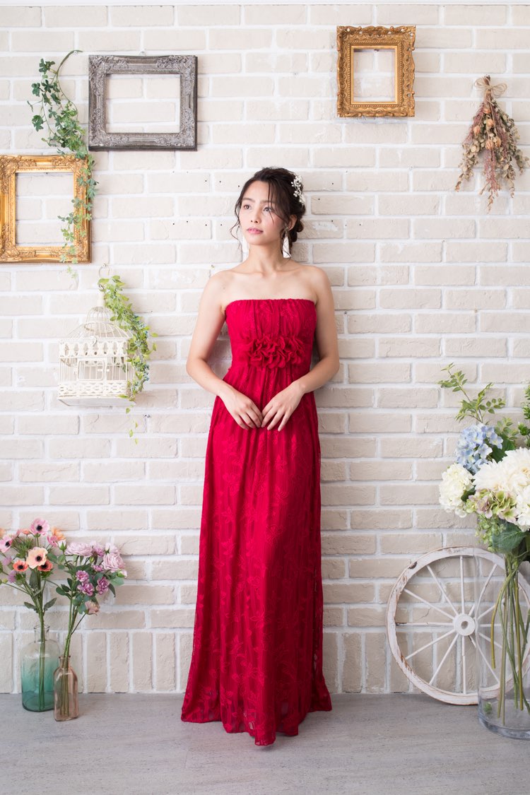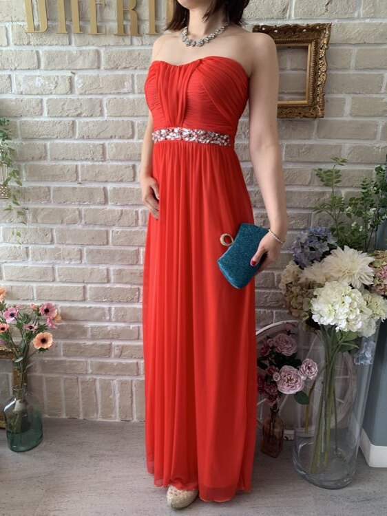 ★パステルオレンジクリスタルビジュー付ロングドレス