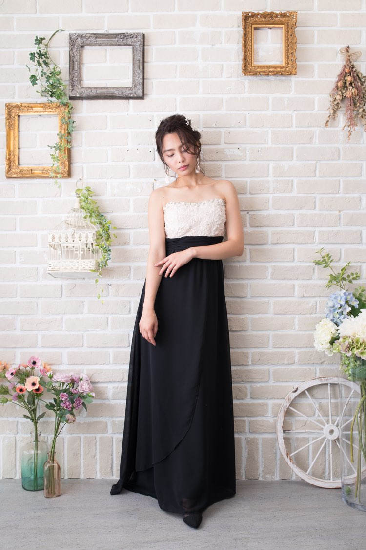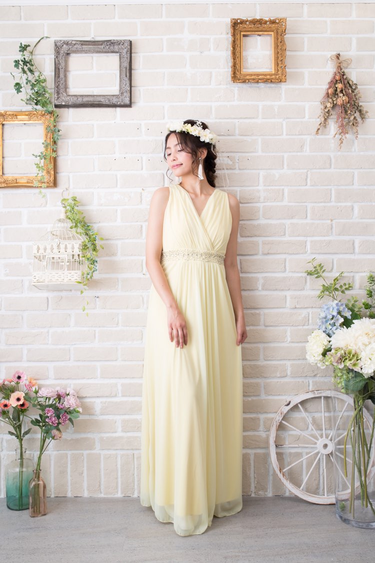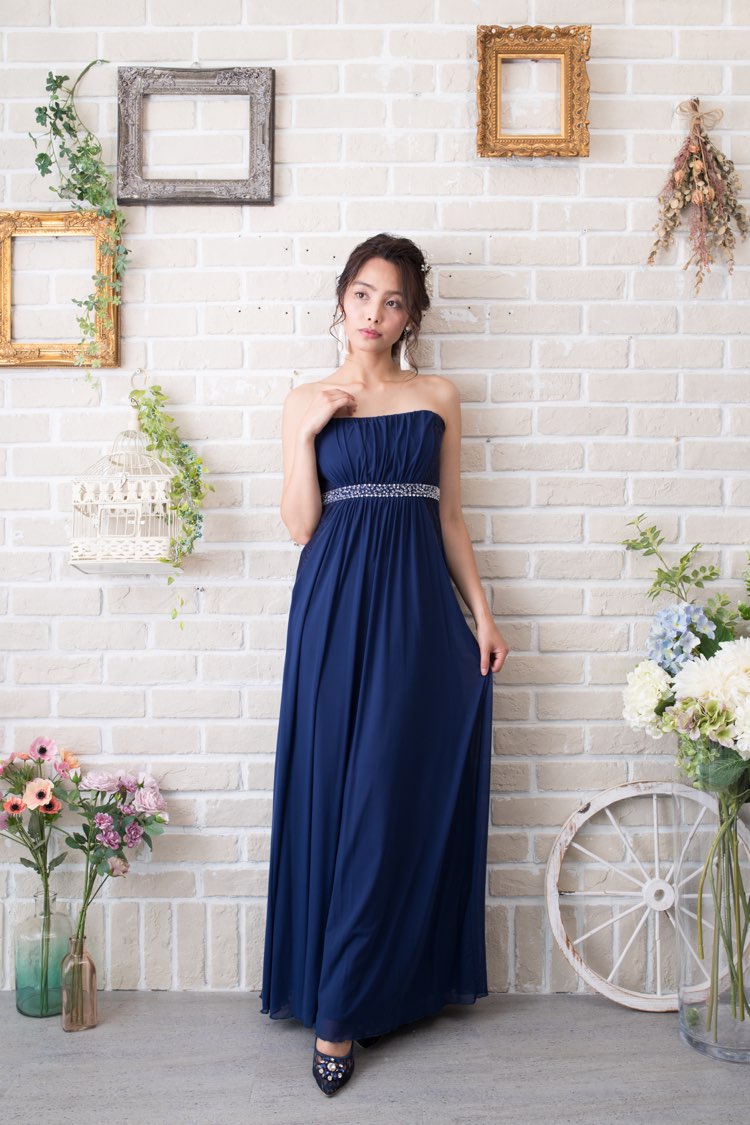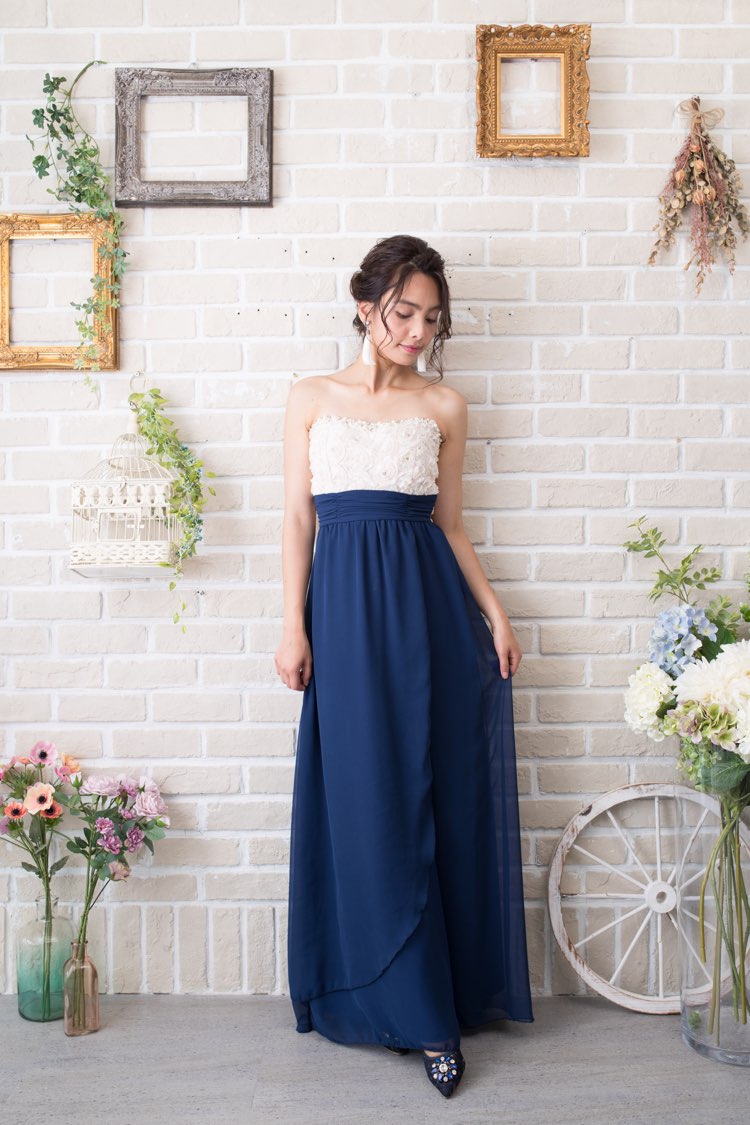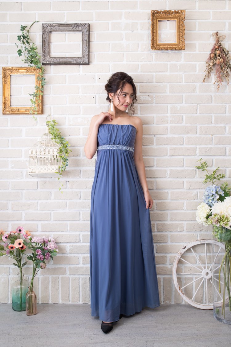 ★ブルーサイドビジュー付きノースリーブロングドレス