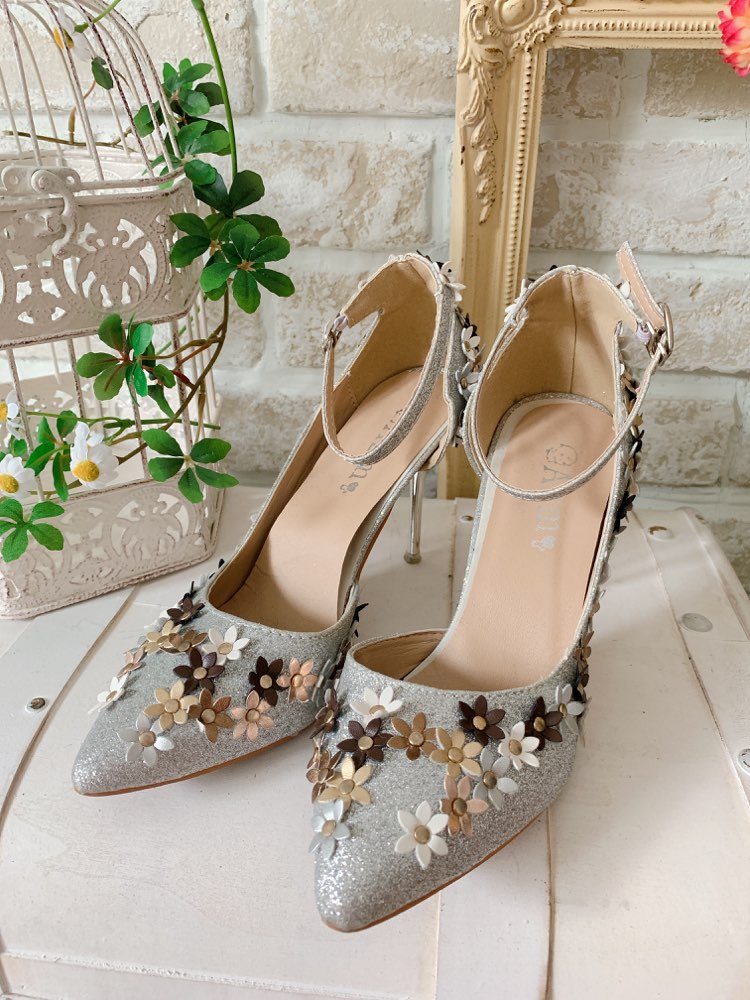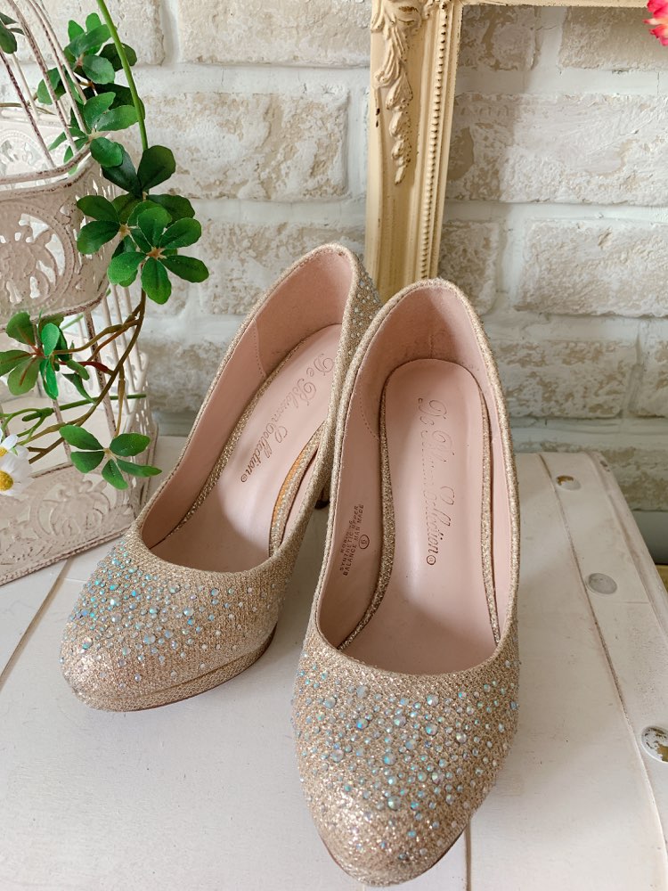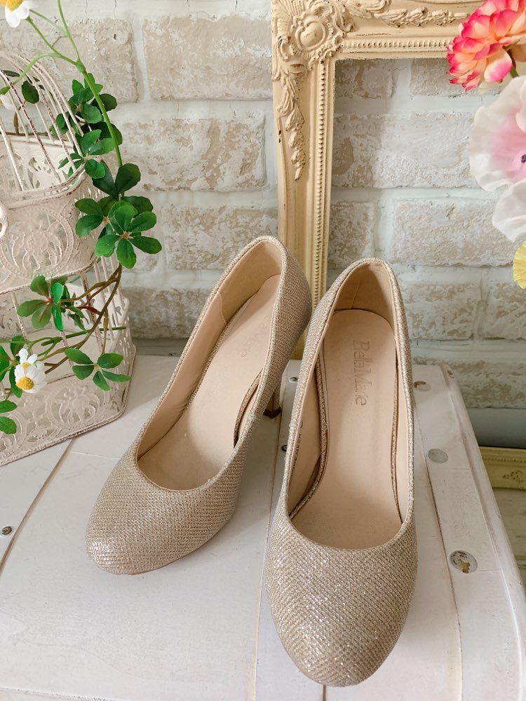 ピンクゴールド・キラキラパンプス【ヒール高め】