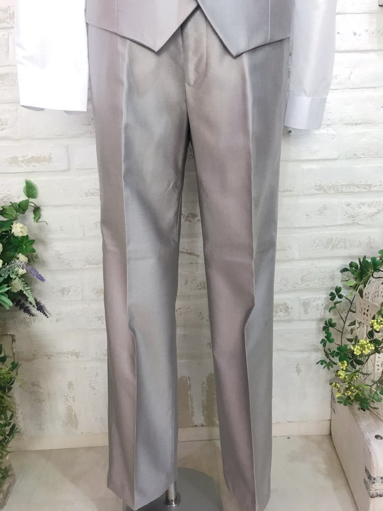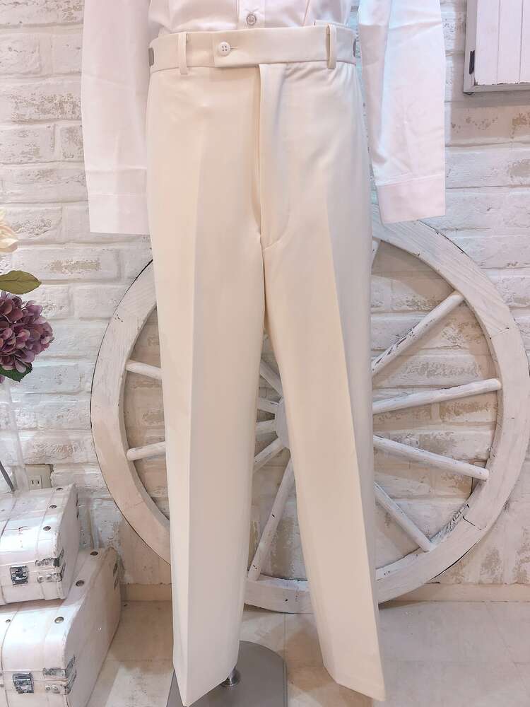 オフホワイト光沢丈長めタキシードセットパンツAL